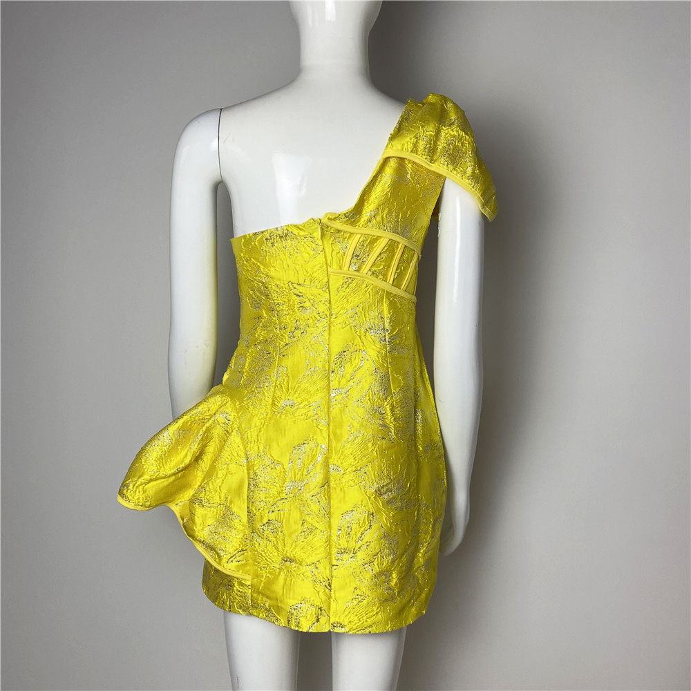 One Shoulder Jacquard Embroidered Dress Ladies Party Dress Short