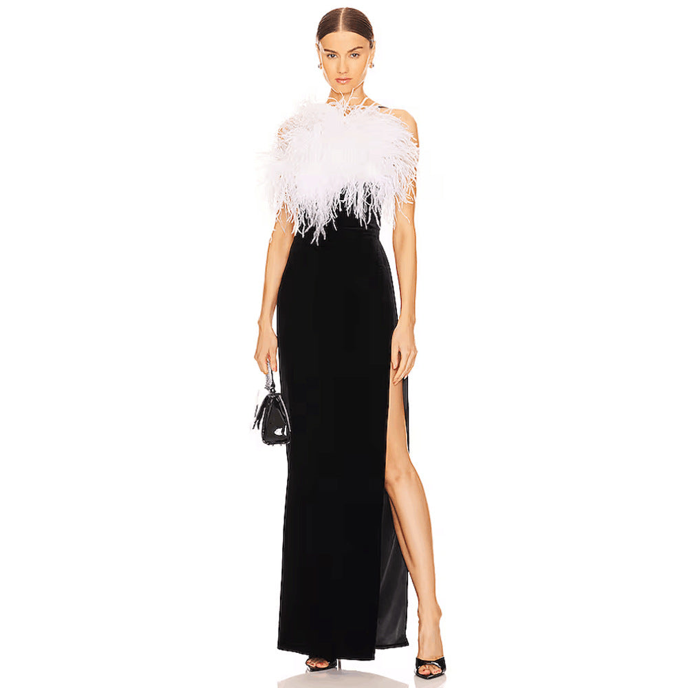 Ostrich Feather Sling Dress Bandage One Piece Dress Dress