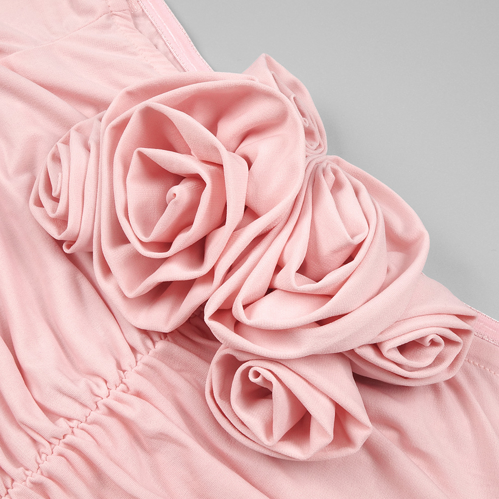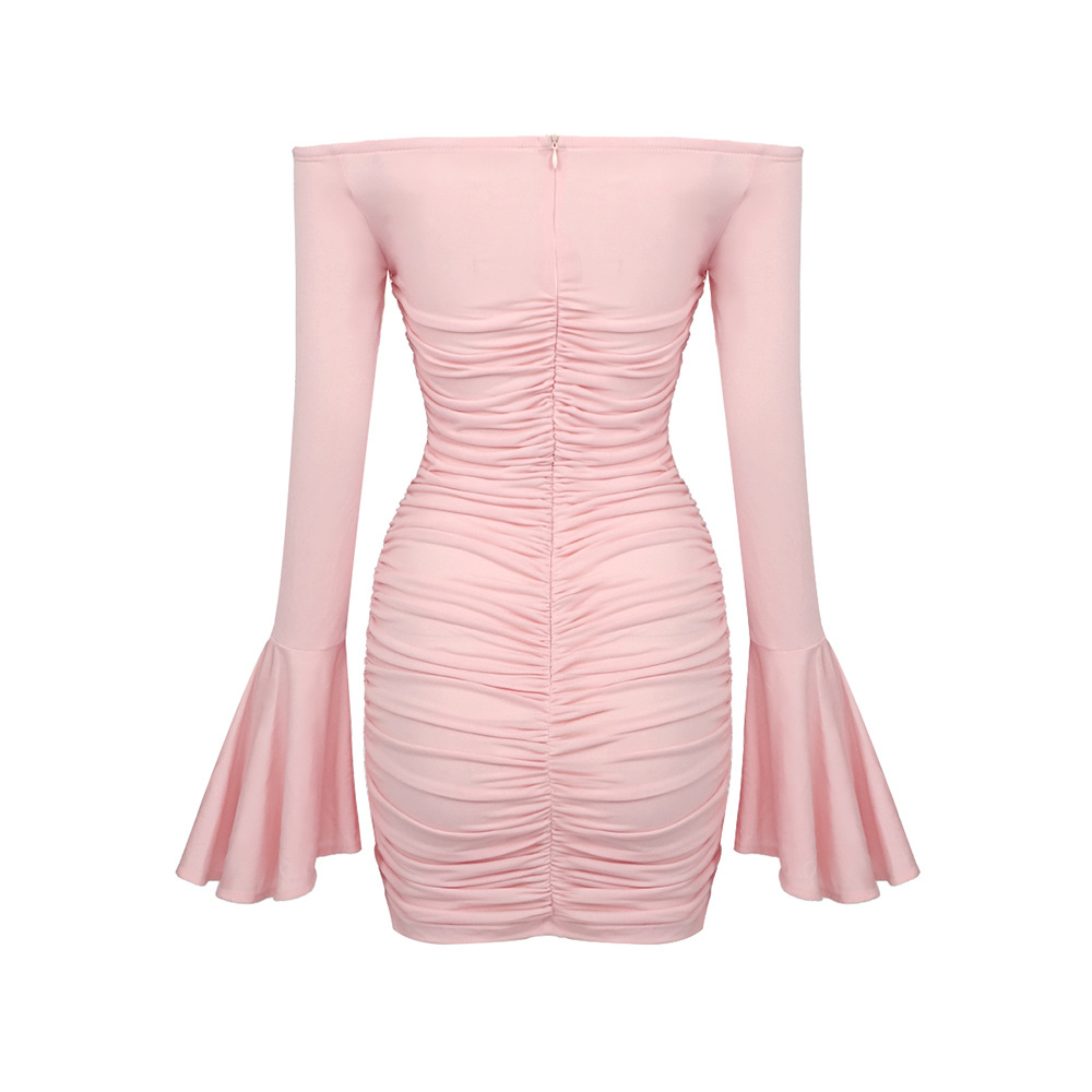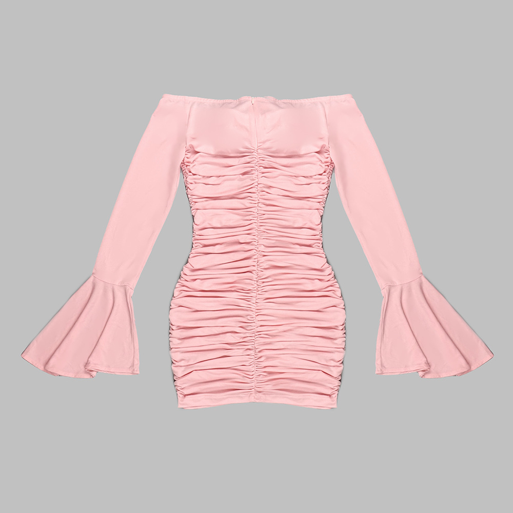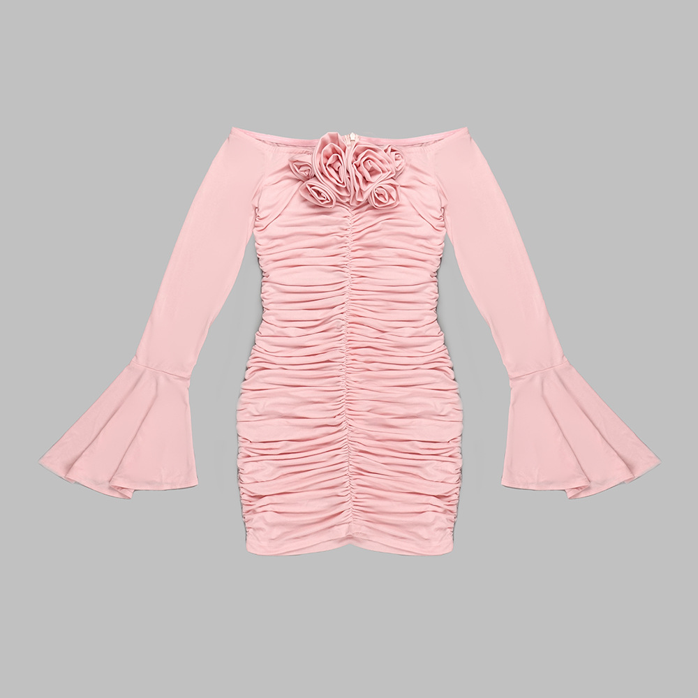 Pink Bell Sleeve Floral Dress Pleating Tube Top Dress Design