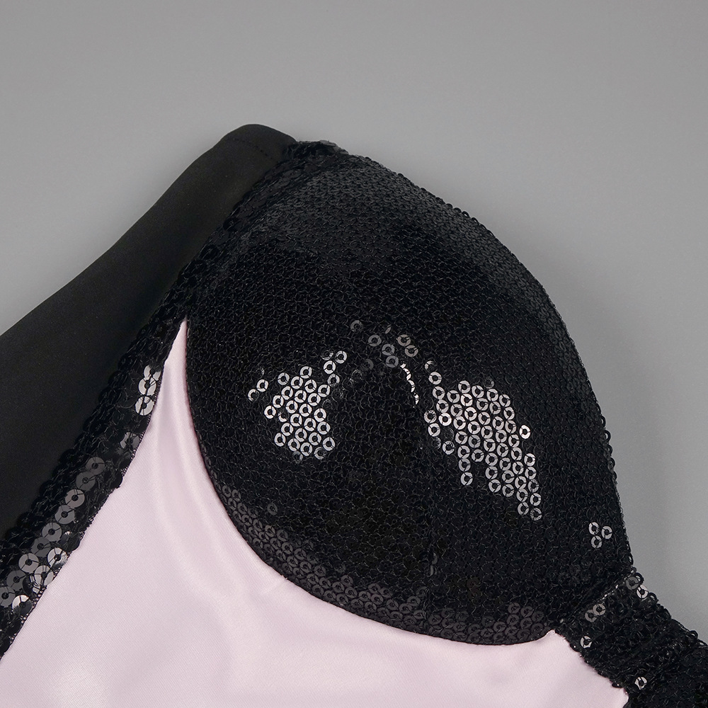 Pink Satin Sequin Ladies Formal Dress Tube Top Elegant