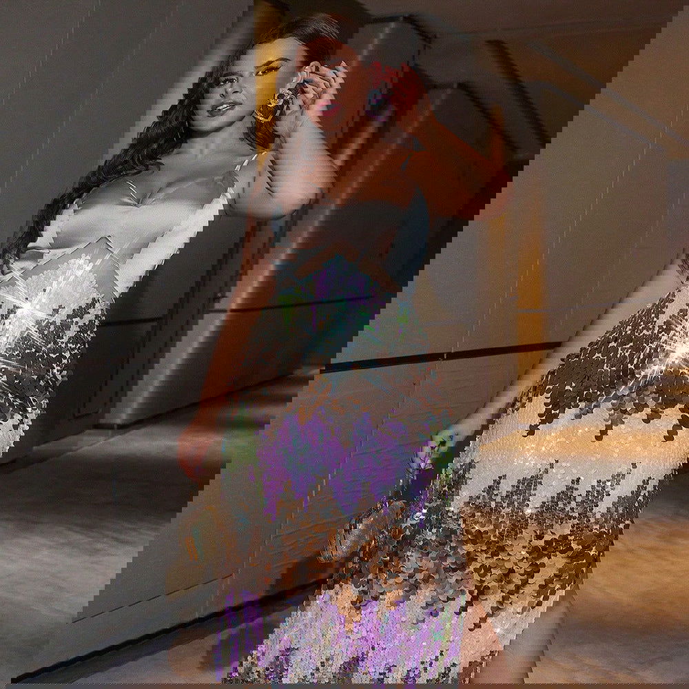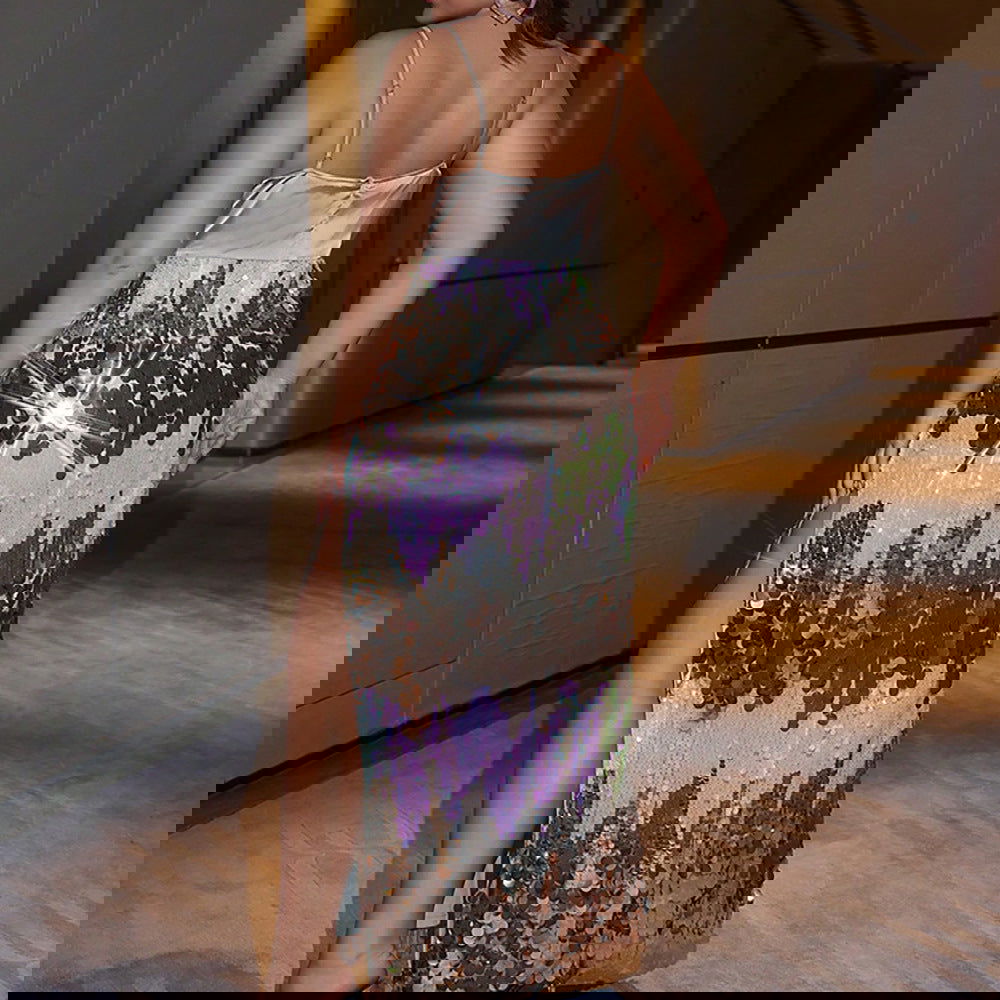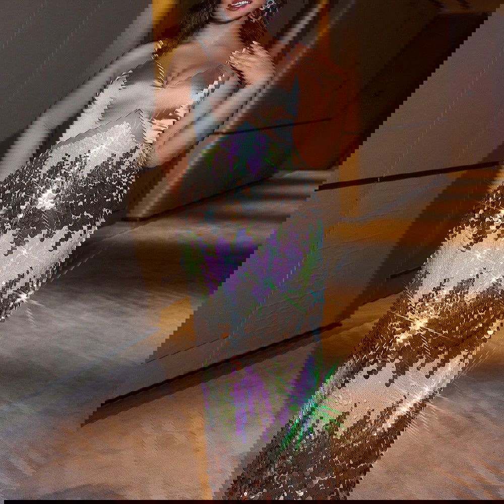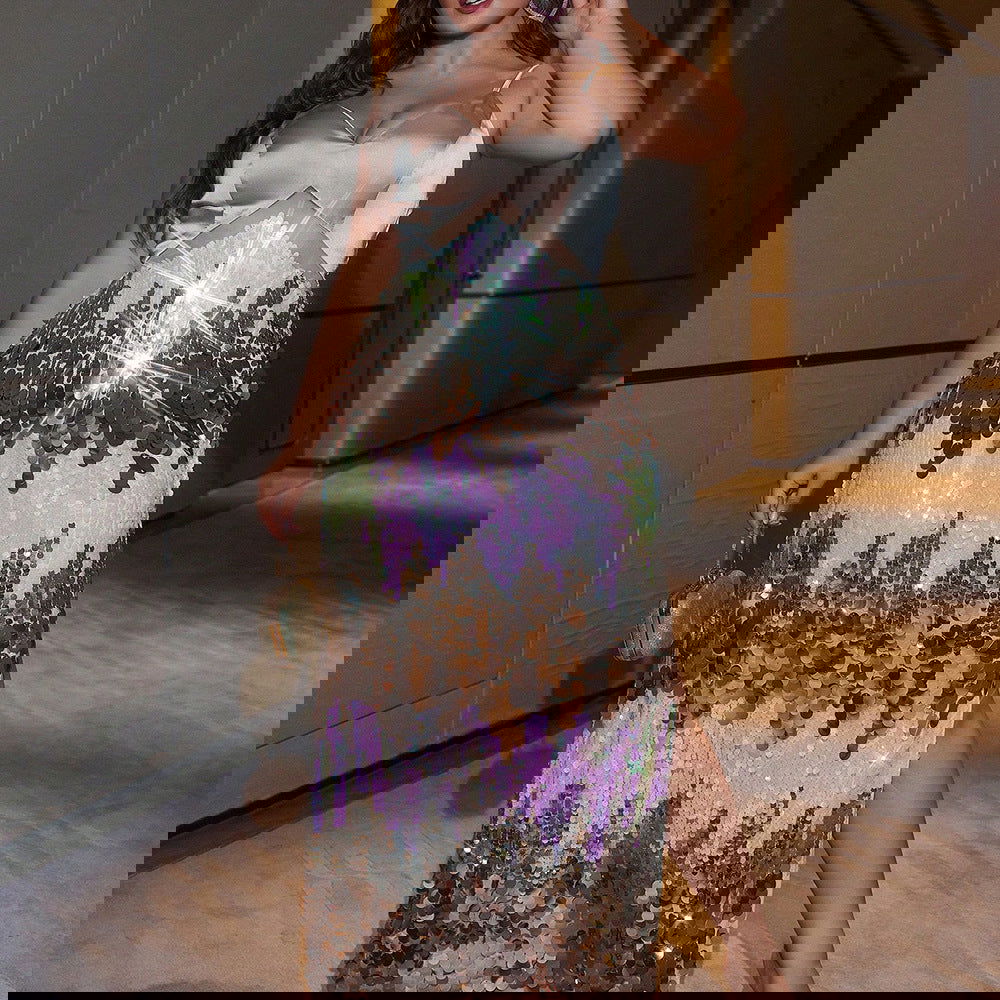 Plus SizeElegant Dress Plump Girls Slim Fit Sequined Stitching Cocktail Evening Dress