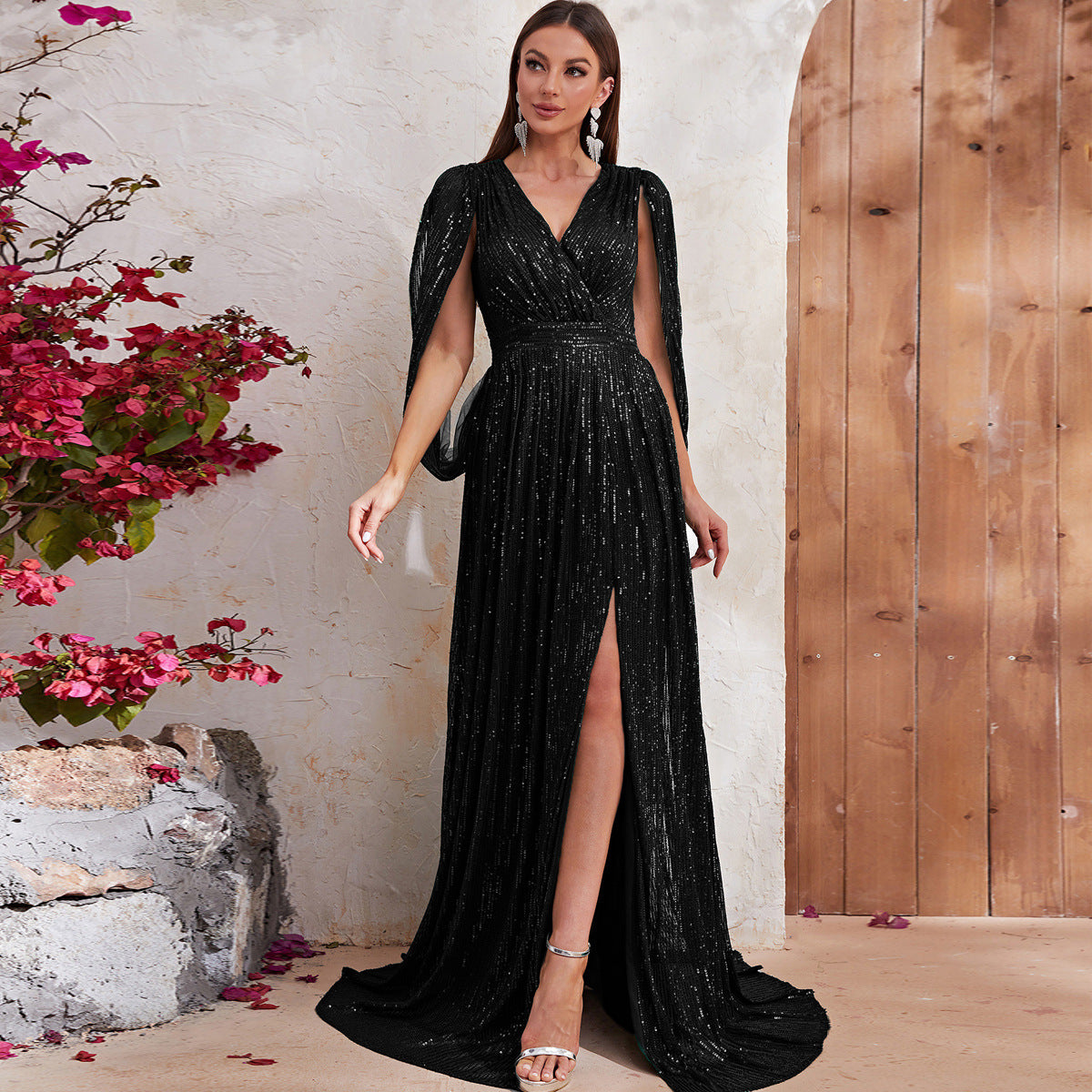 Popular Dress Sequined V neck Prom Evening Dress Split Maxi Dress High End Cocktail Dress