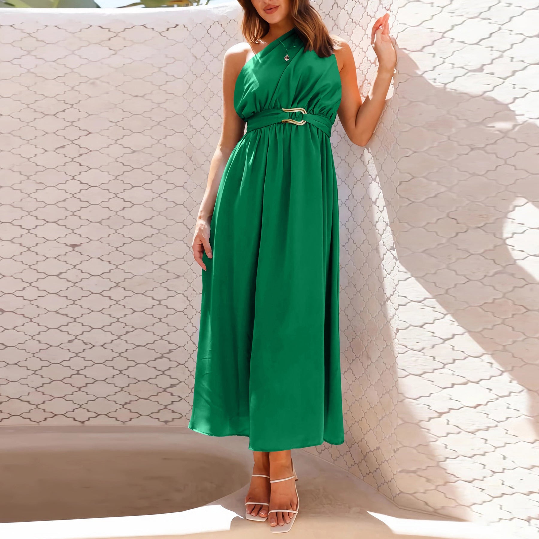 Popular Elegant Slim One Shoulder Metal Thin Dress Dress