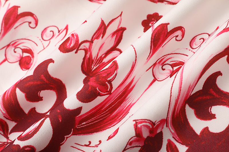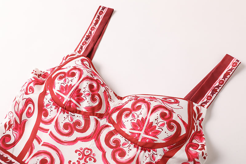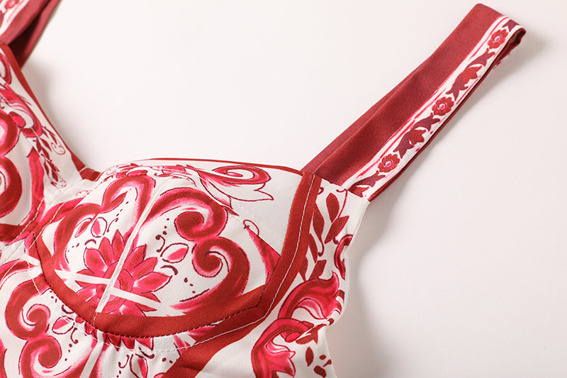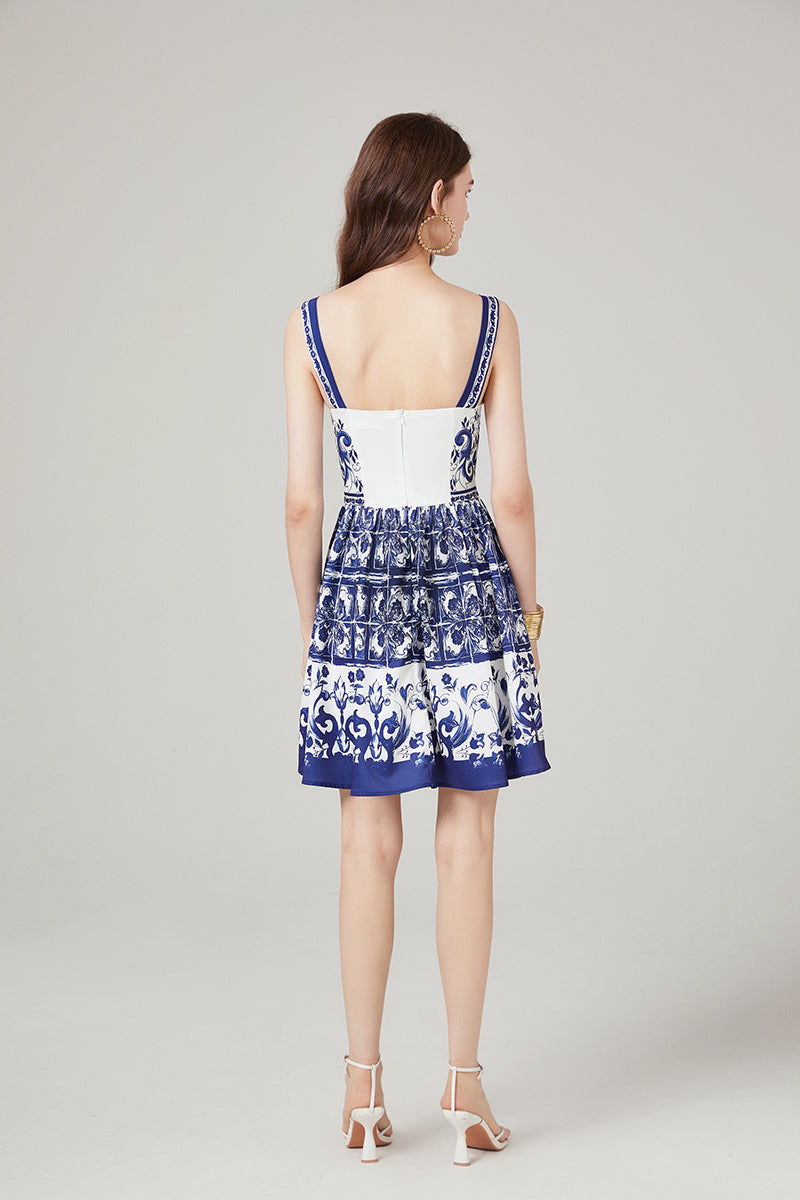 Positioning Printed Stitching Slim-fit High Waist dress Strap A line Dress