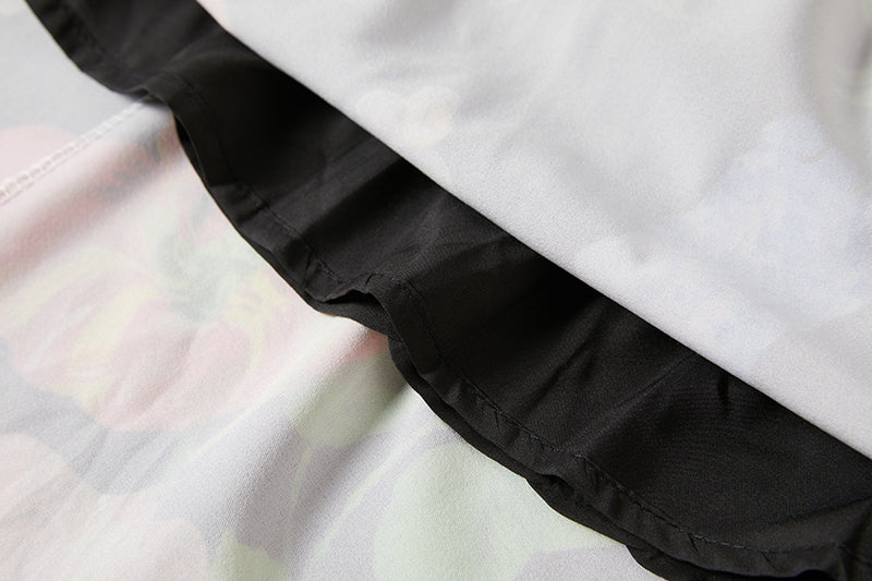 Positioning Vintage Printed Three Dimensional Strapless Strap Dress Back Rubber Strap High Waist Dress