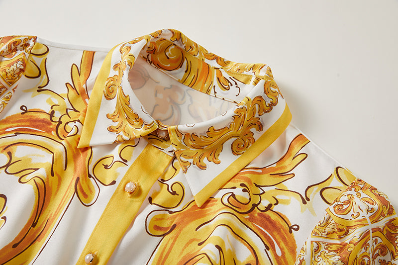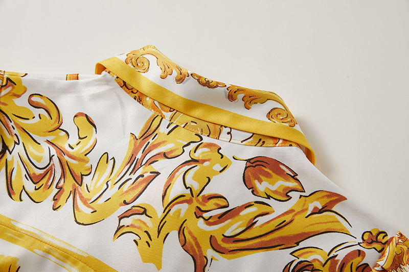 Printed Belted Button A Line Dress