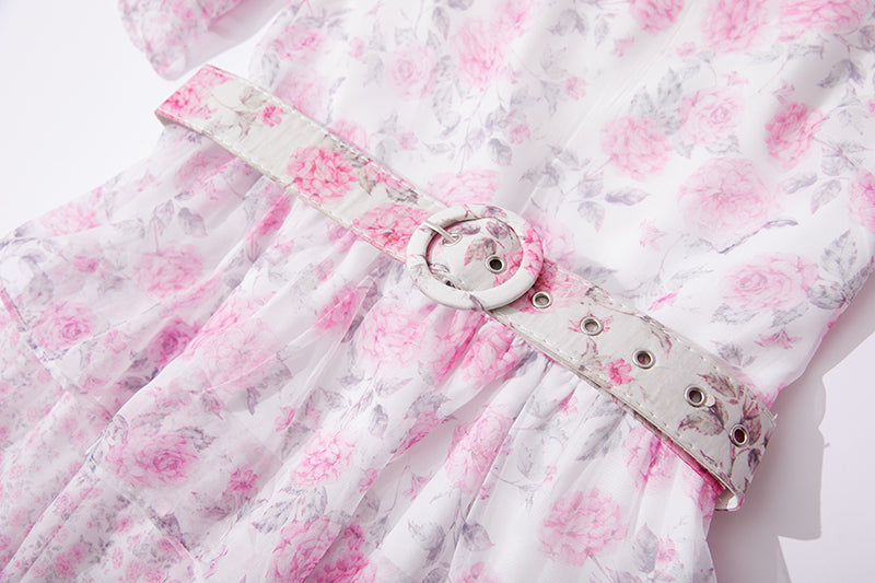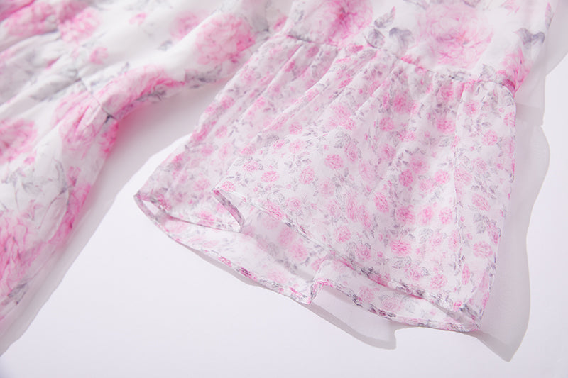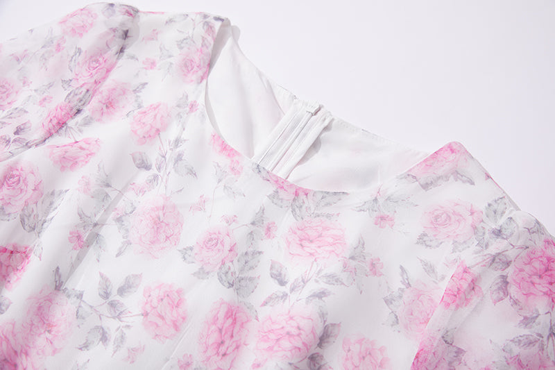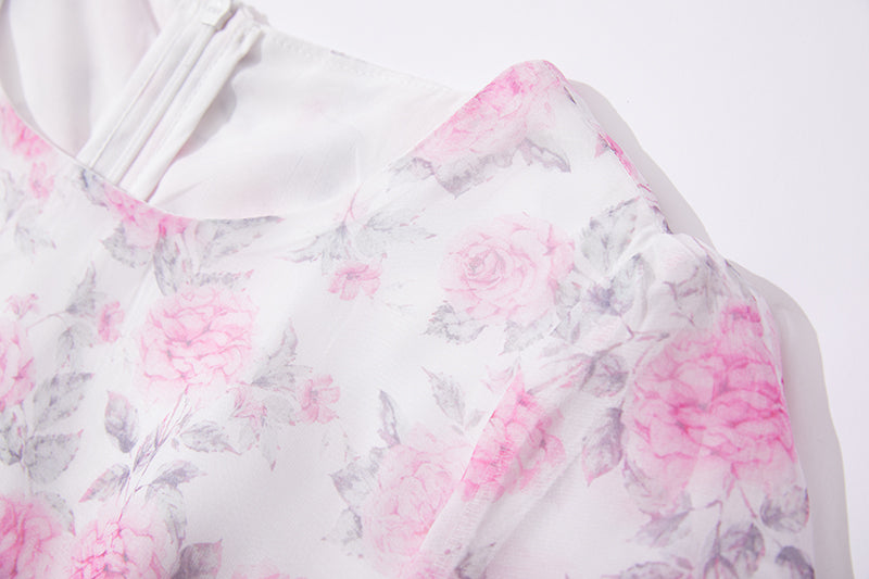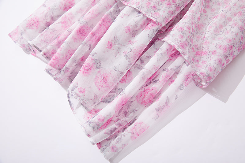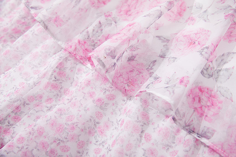 Printed Horn Sleeve 5 Layer Cake dress Silk Large Dress