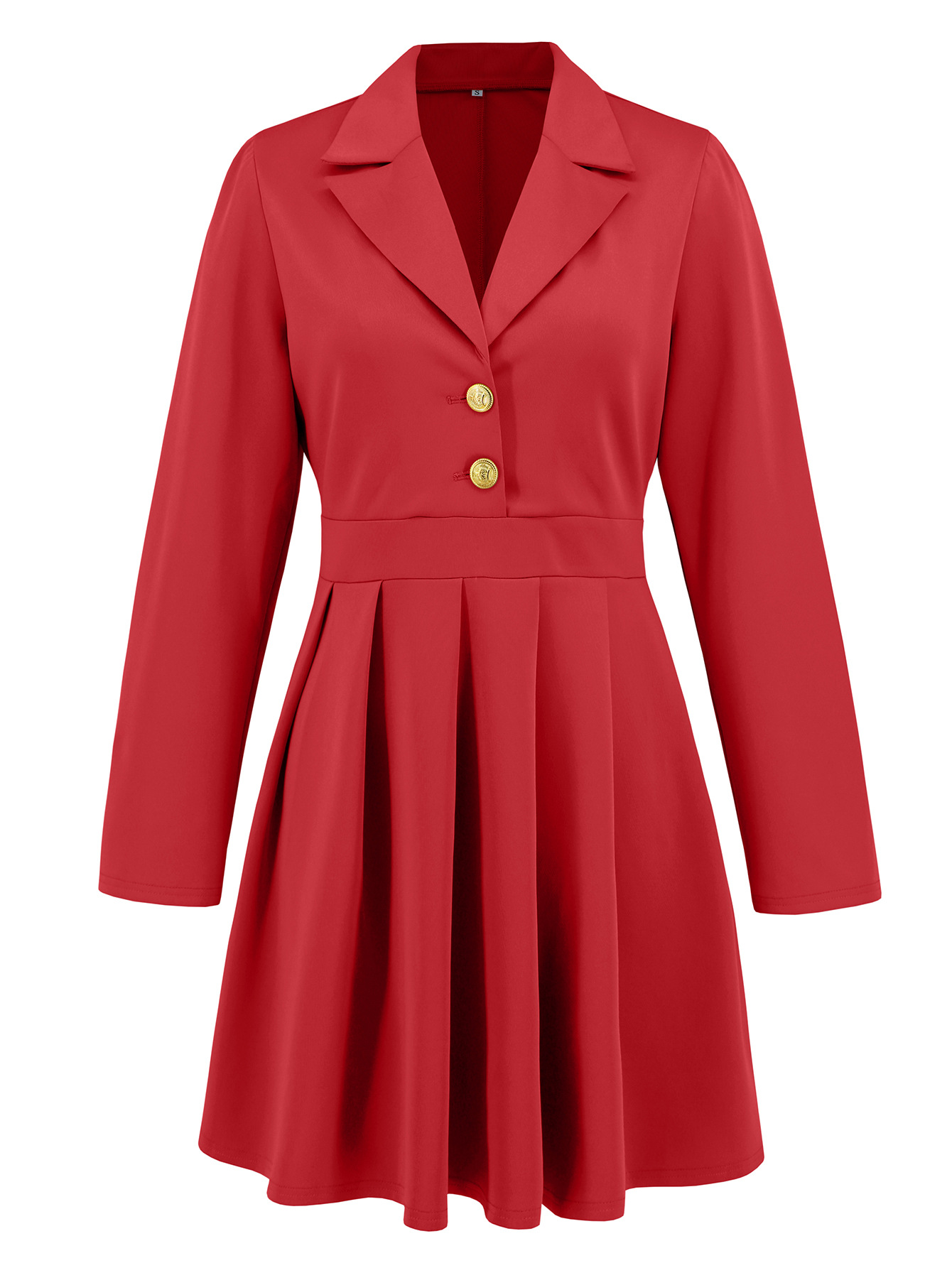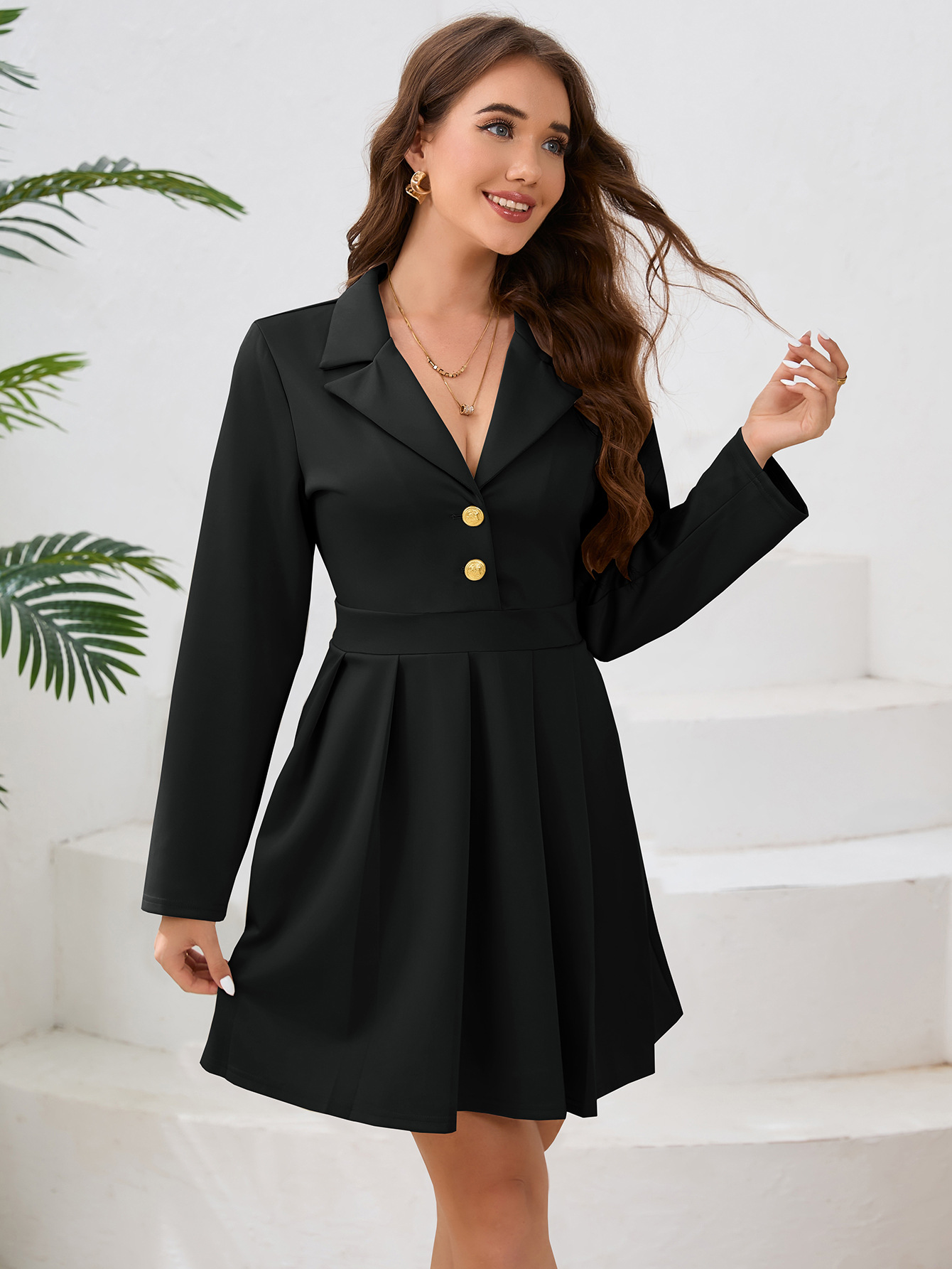 Professionelles, einreihiges, kurzes, plissiertes Kleid mit Kragen