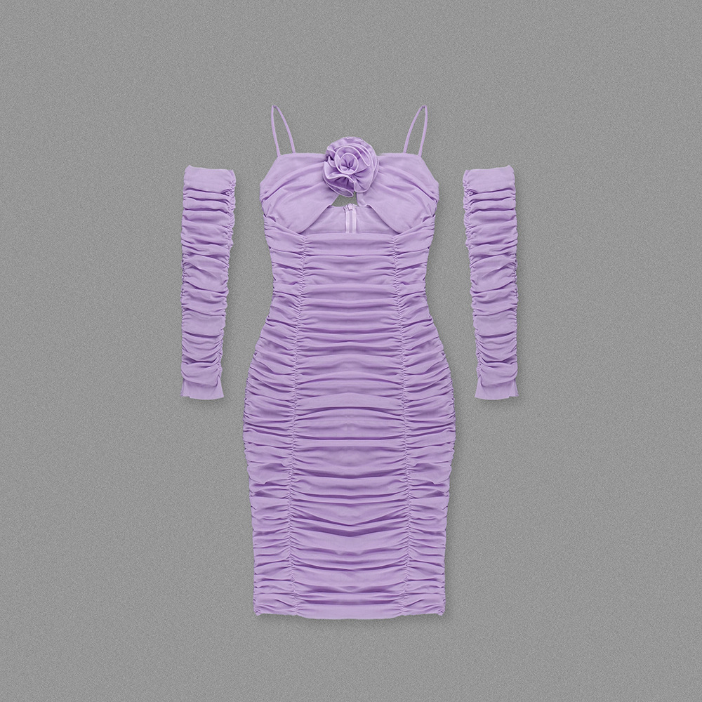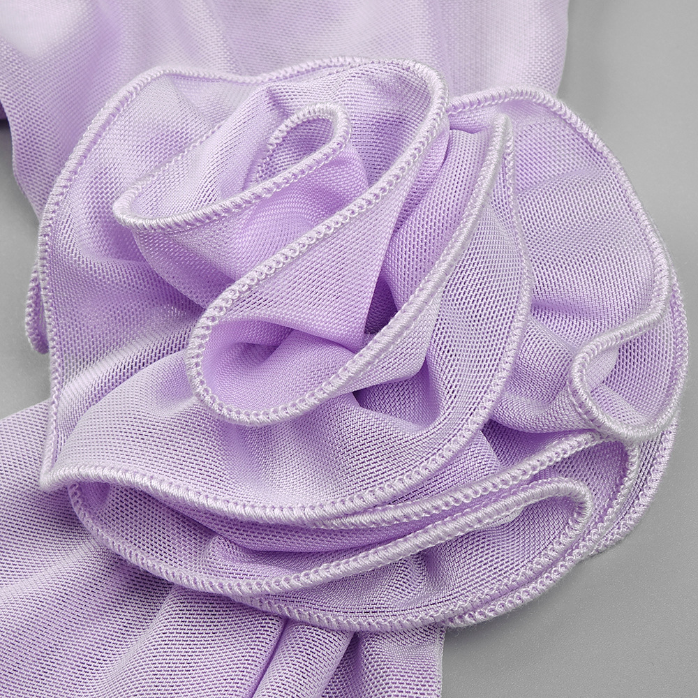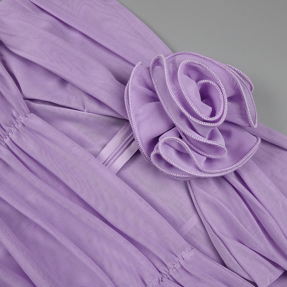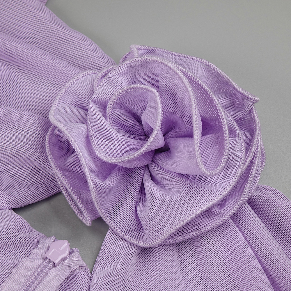 Purple Long Sleeve Dress Slim One Neck Sleeve Floral Tulle Dress