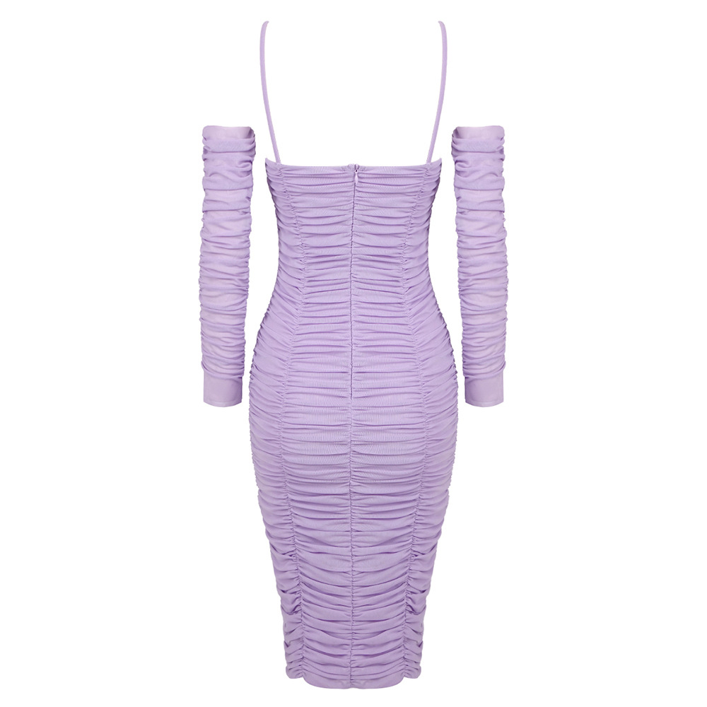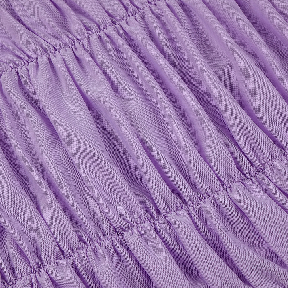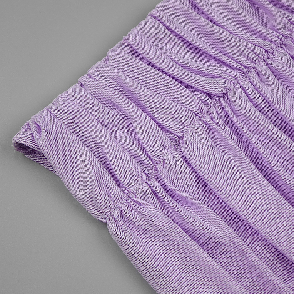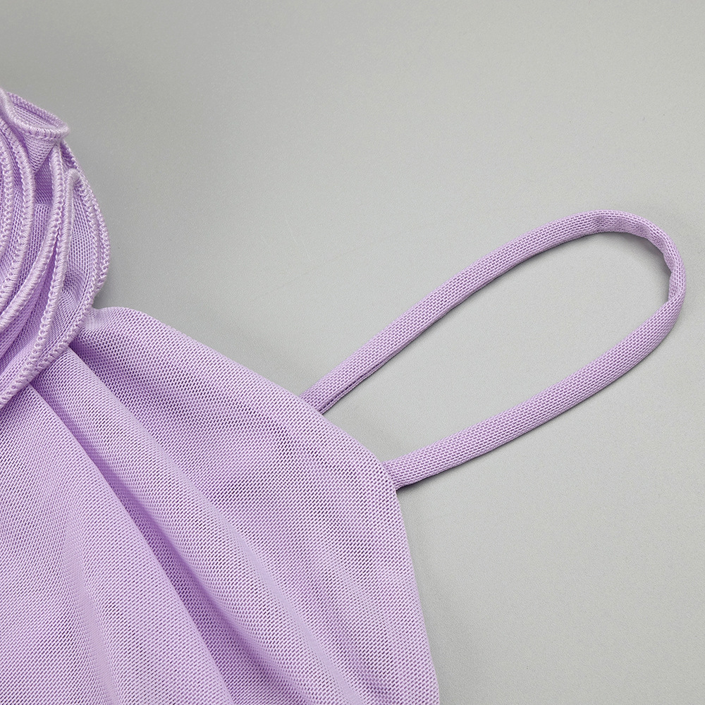 Purple Long Sleeve Dress Slim One Neck Sleeve Floral Tulle Dress