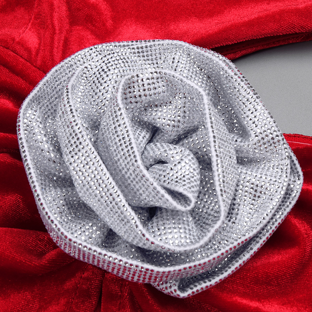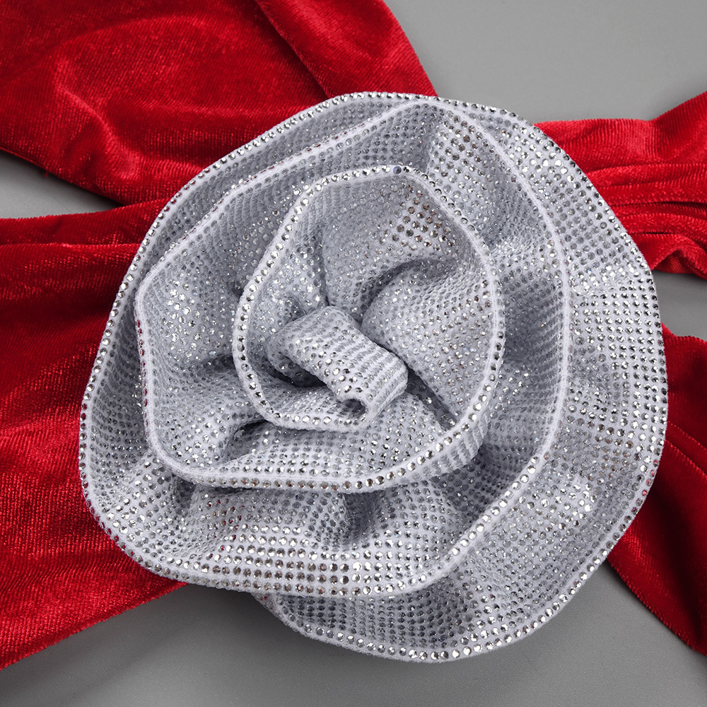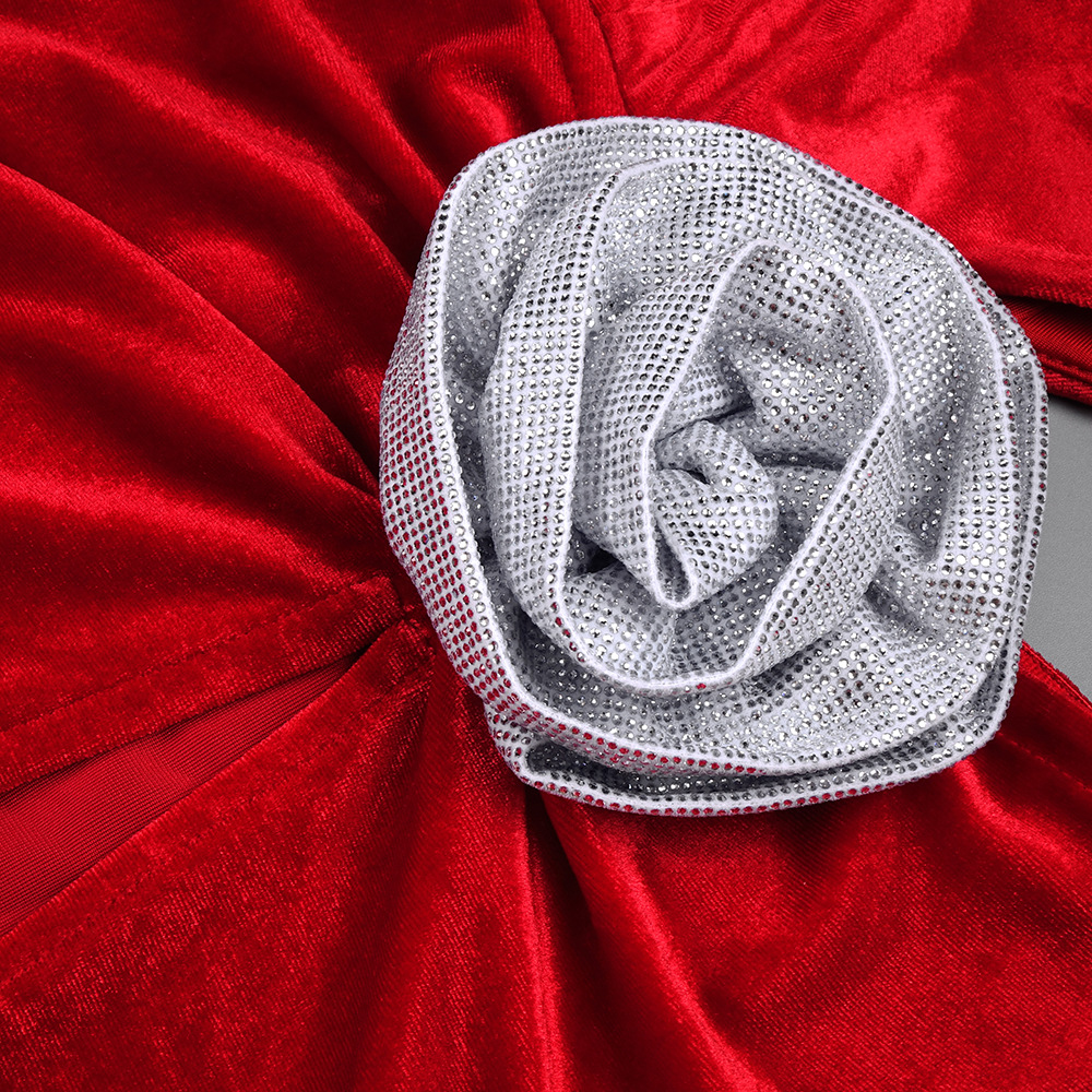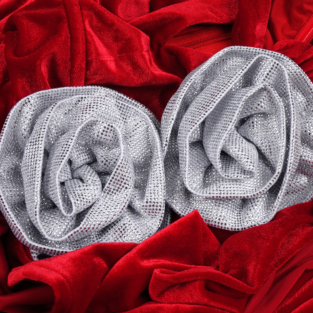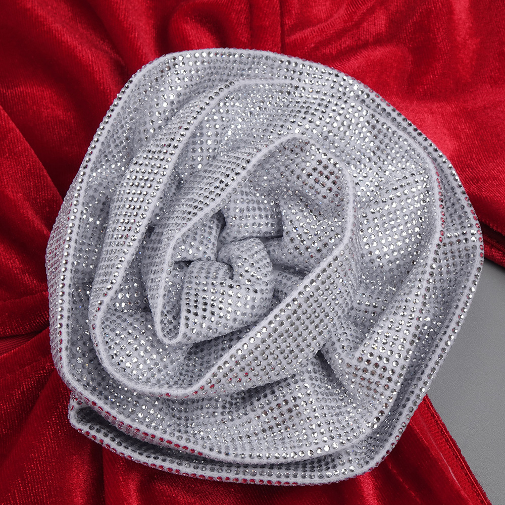 Red Rhinestone Three Dimensional Floral Hollow Out Cutout Velvet Dress Backless Formal Dress