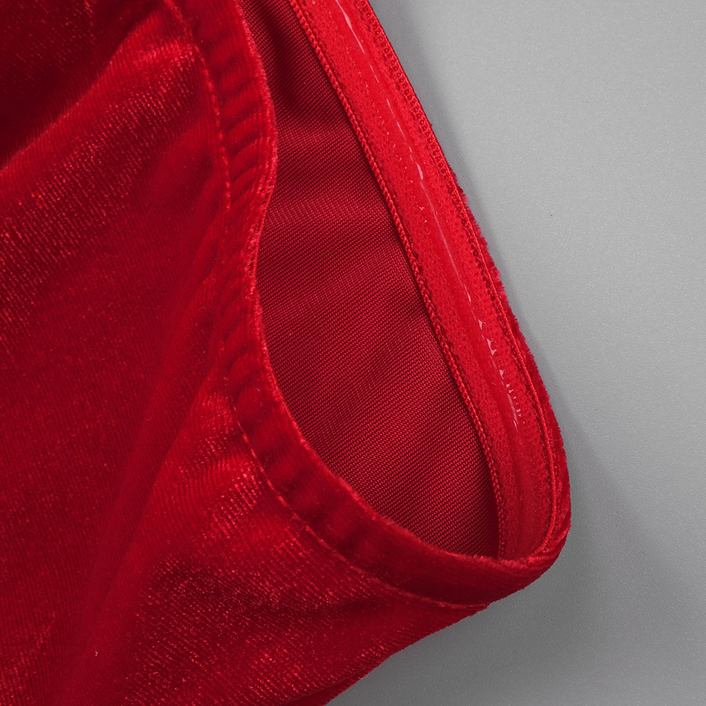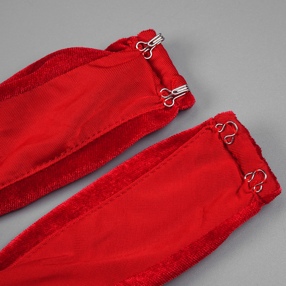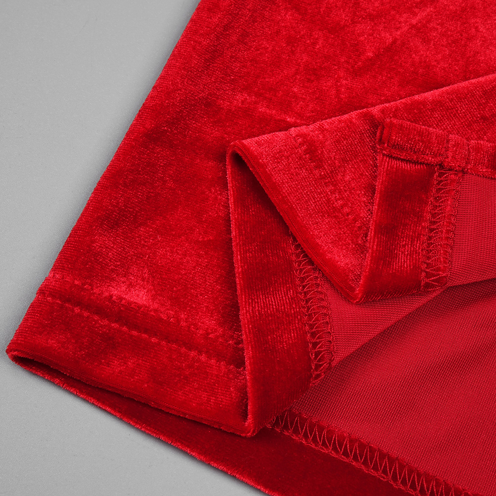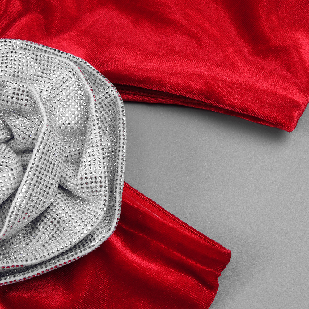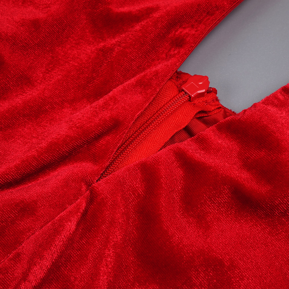 Red Rhinestone Three Dimensional Floral Hollow Out Cutout Velvet Dress Backless Formal Dress