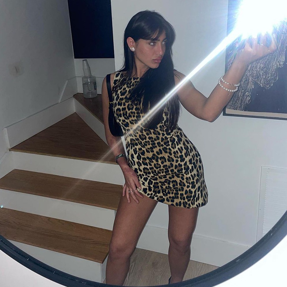 Fashionable Retro Leopard Print Dress Slim Fit Tight Waist Hip