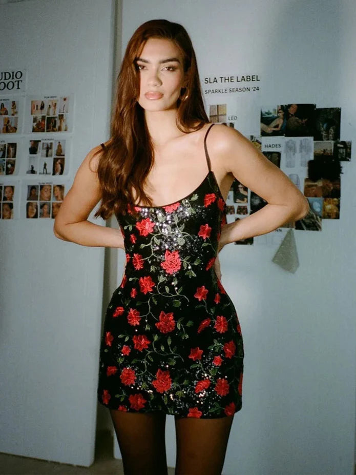 Ärmelloses Minikleid mit Paillettenbesatz in Rosenoptik