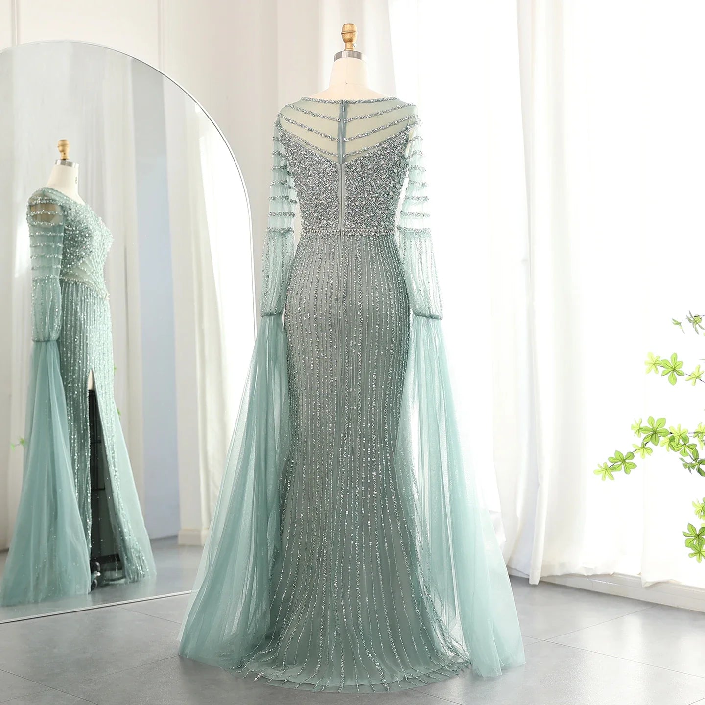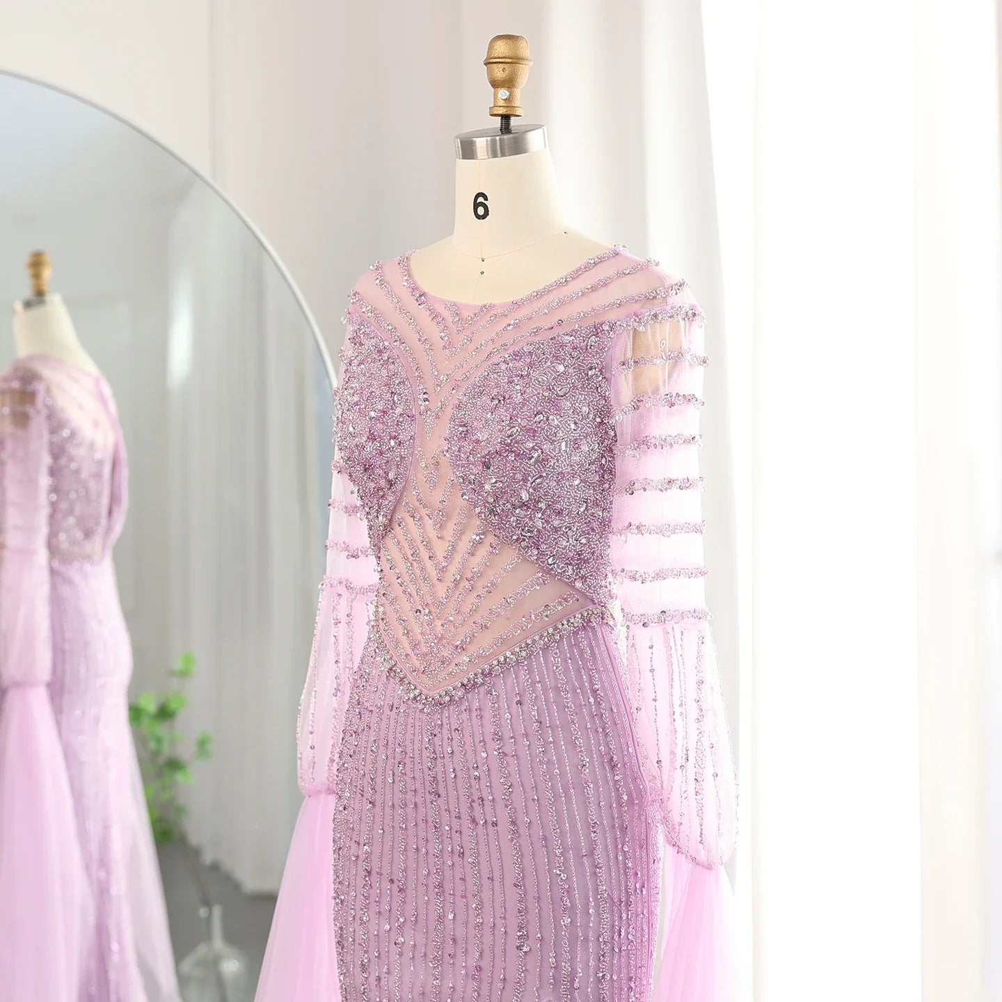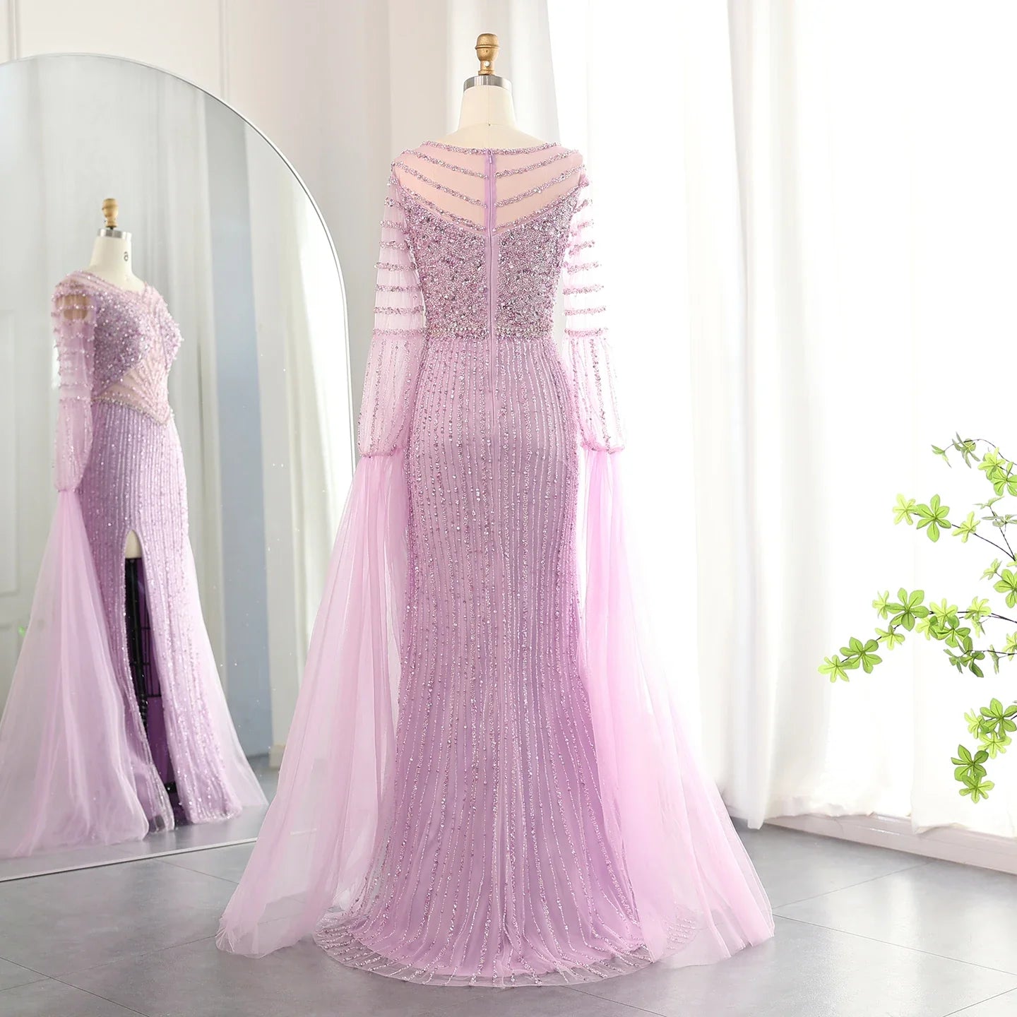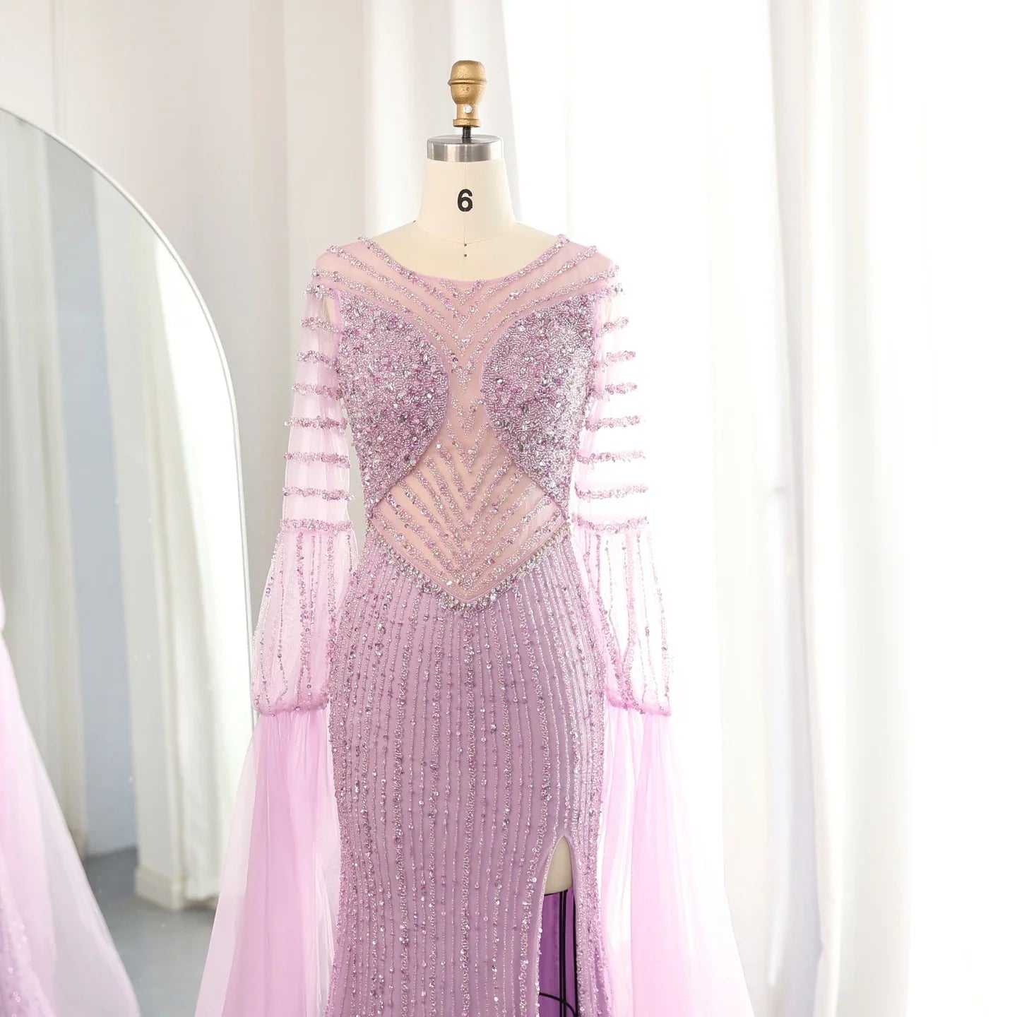 Lilac Mermaid Evening Gown with Cape Sleeves