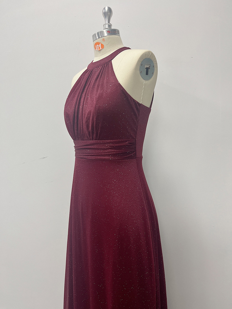 Shiny off Shoulder Backless Wedding Party Dress Sleeveless Halter Evening A line Maxi Dress