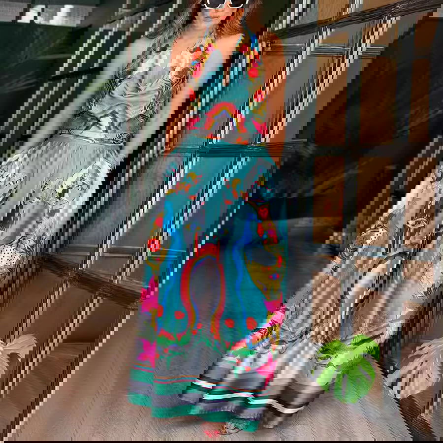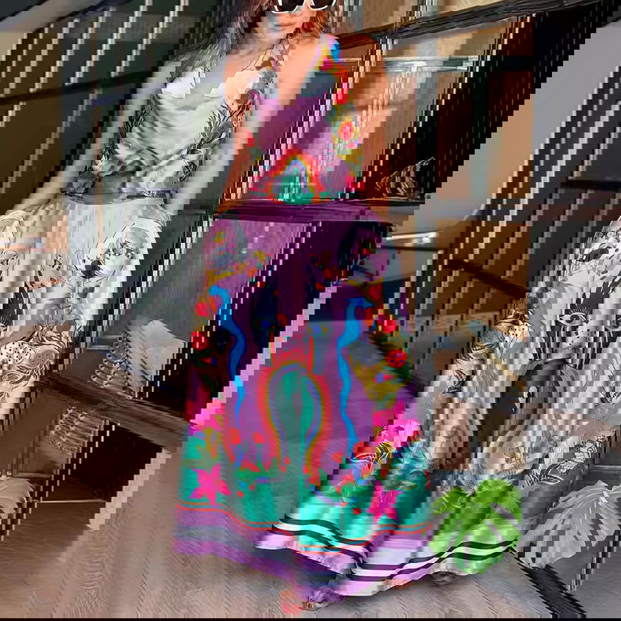 Sleeveless Printed Dress Casual Loose Vacation Lace up Dress