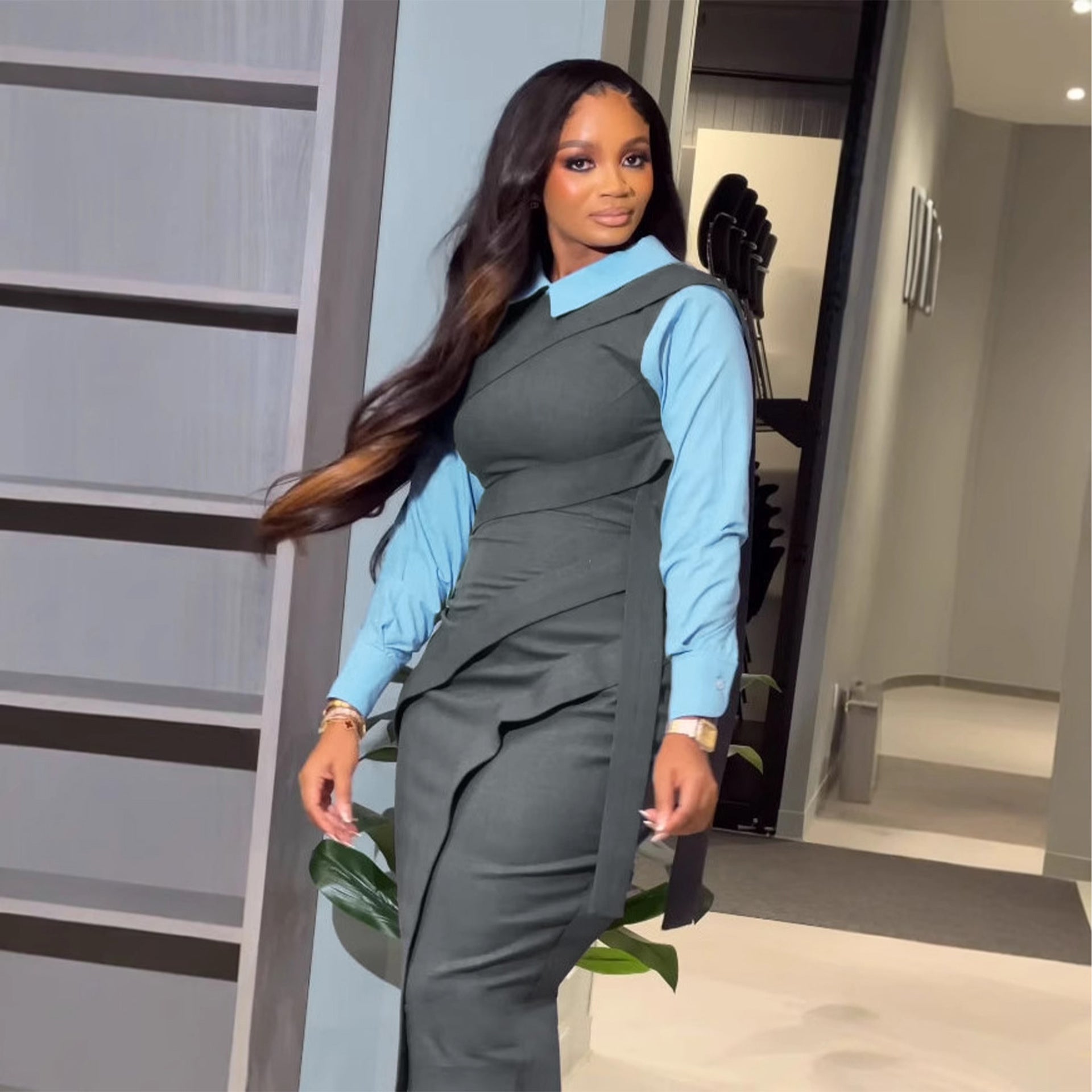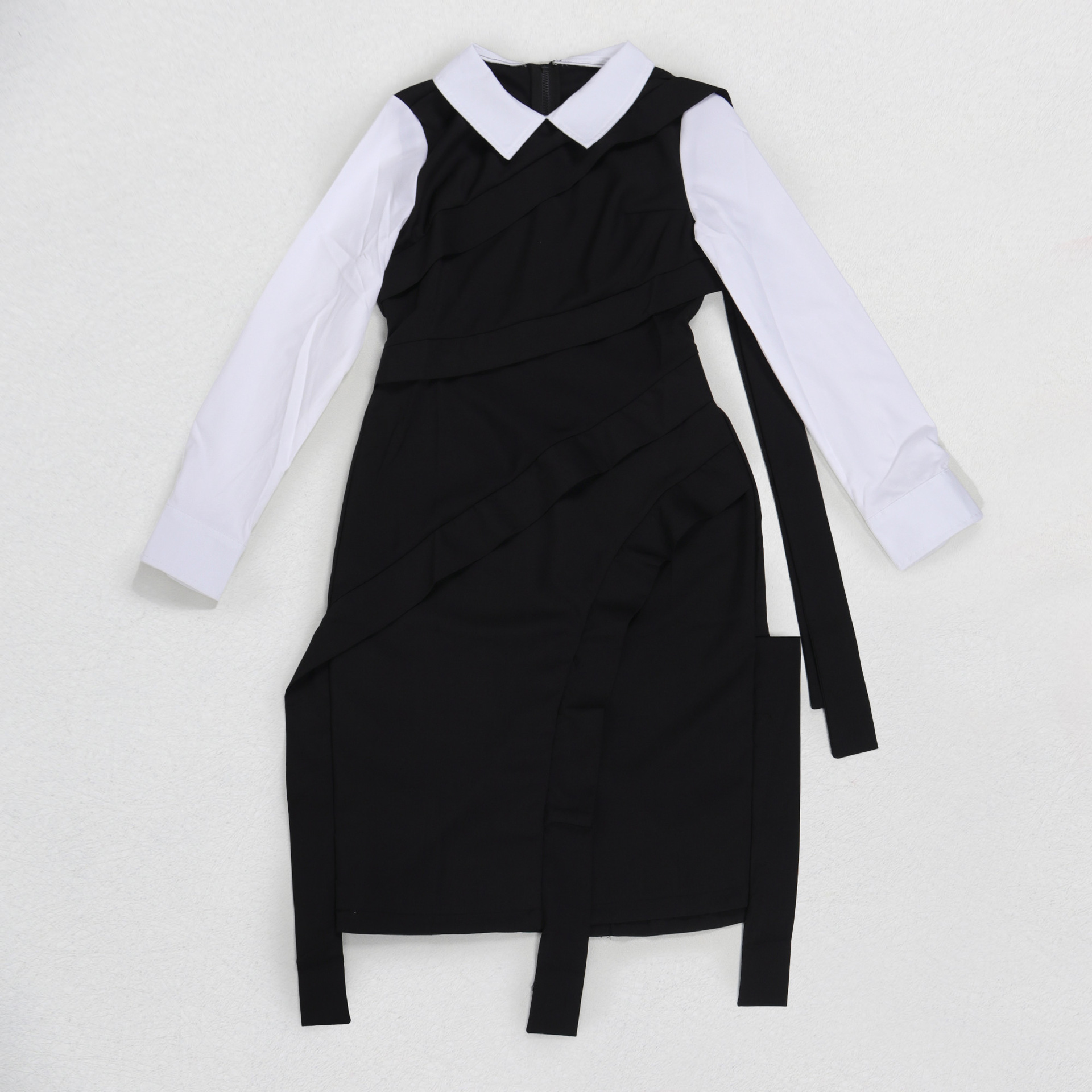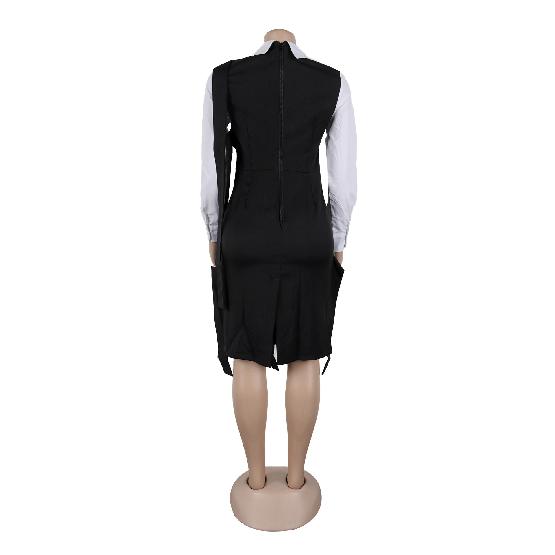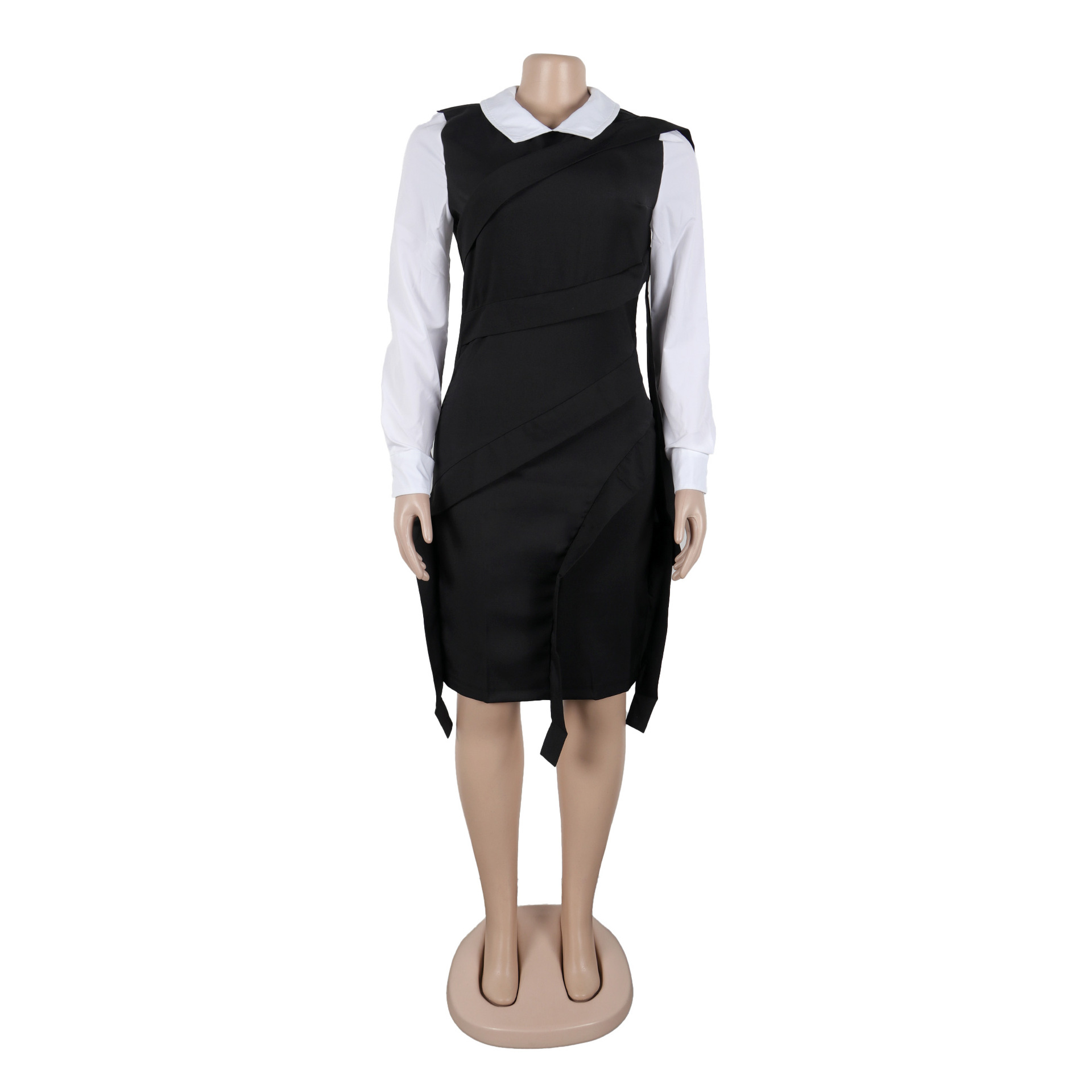 Stitching Contrast Colors False Two Piece Ribbon Slim Back Slit Dress