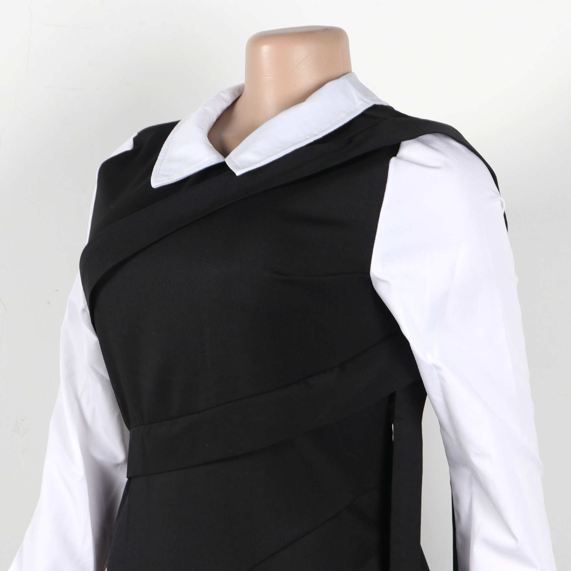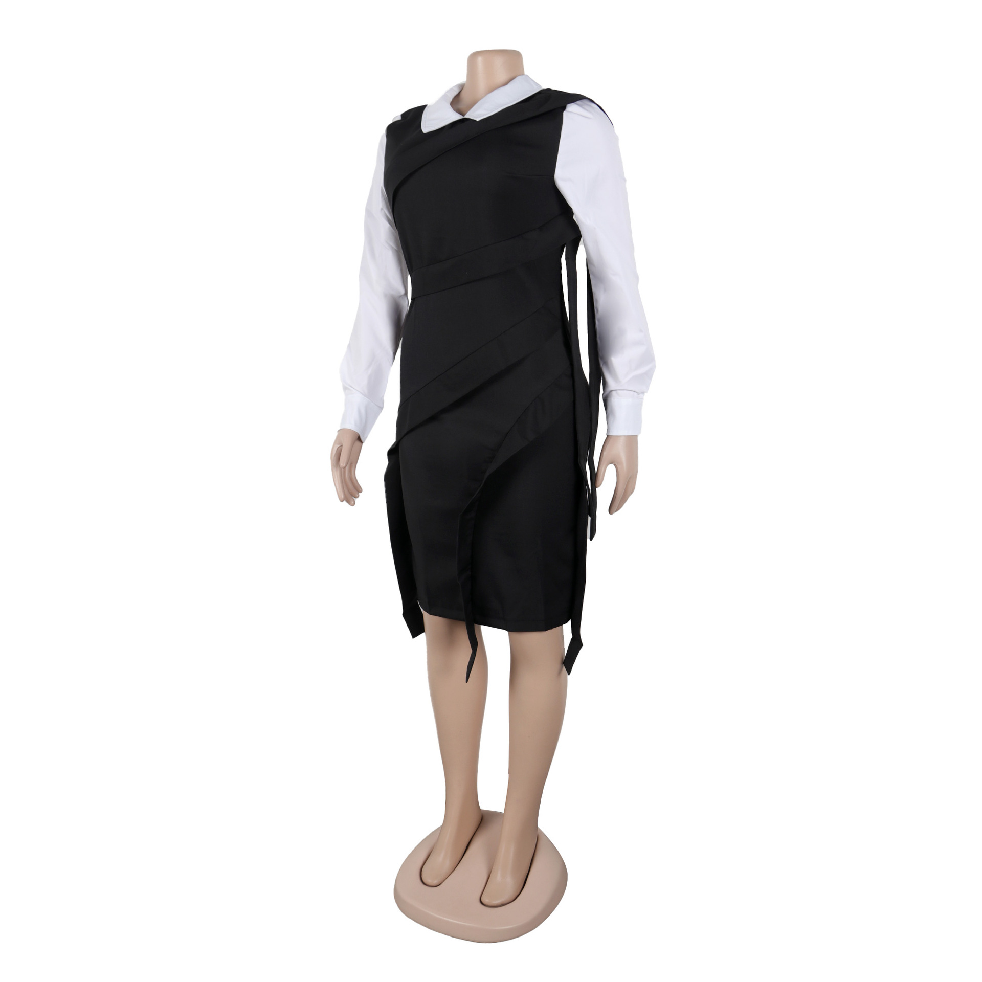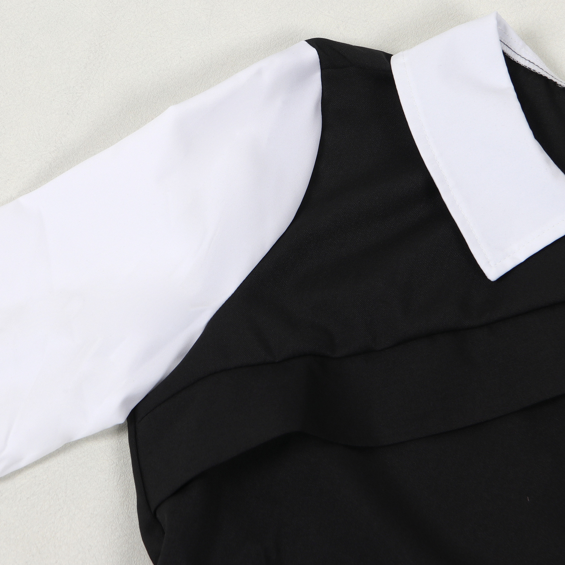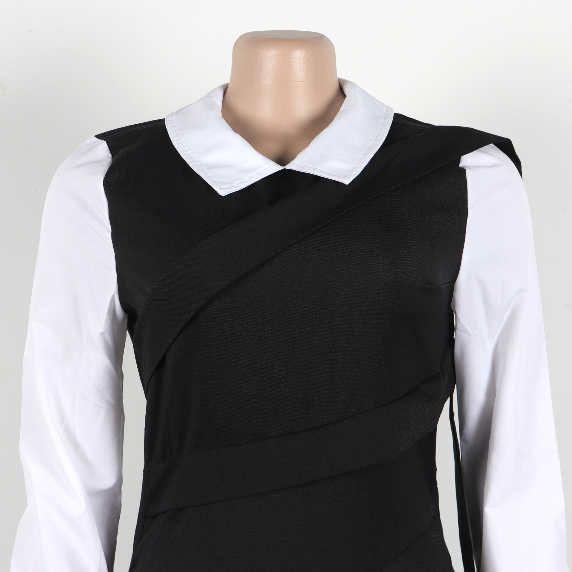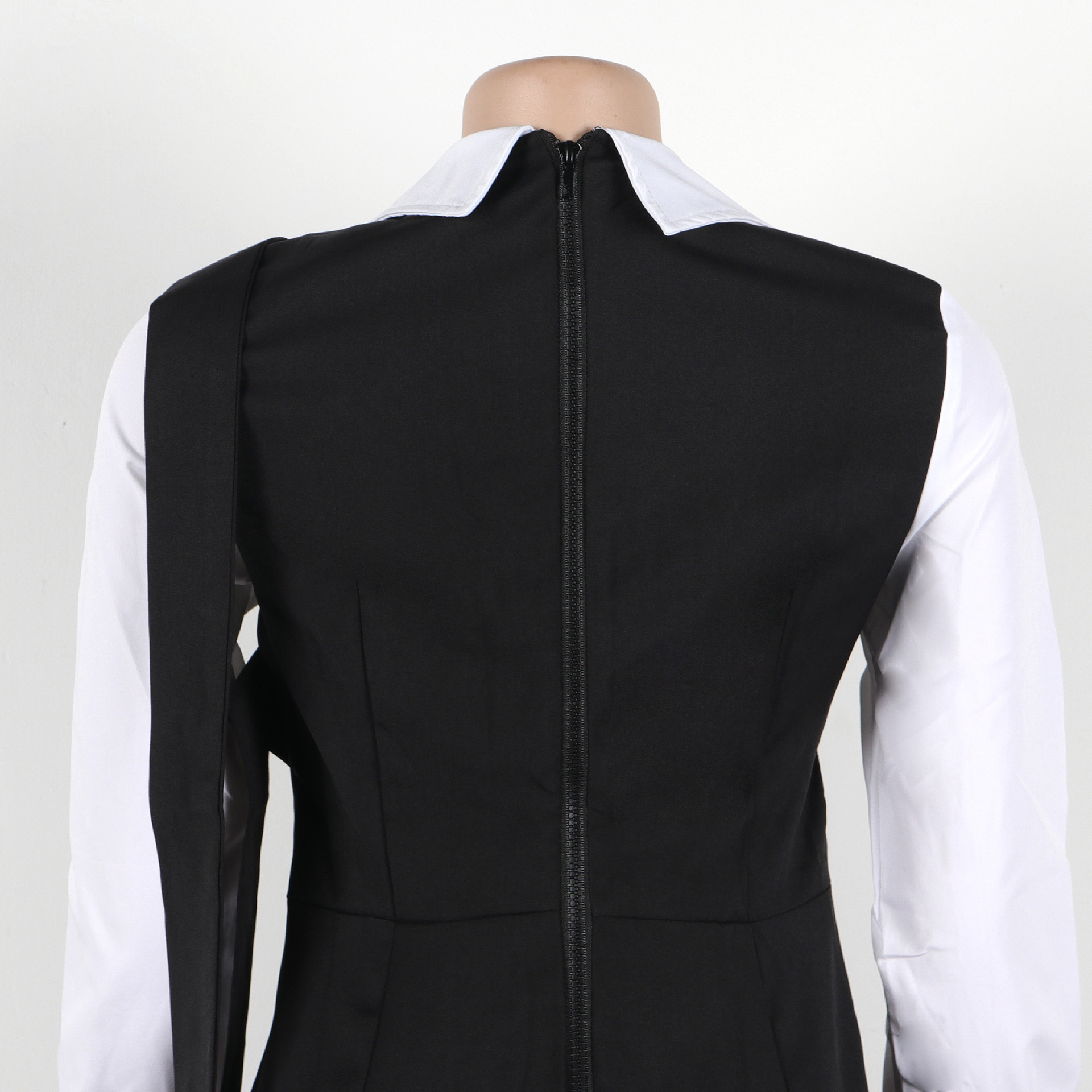Stitching Contrast Colors False Two Piece Ribbon Slim Back Slit Dress