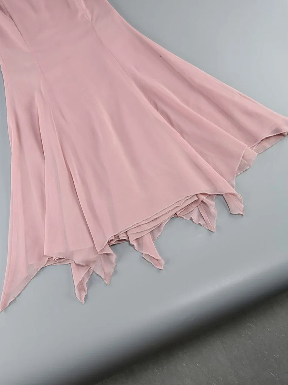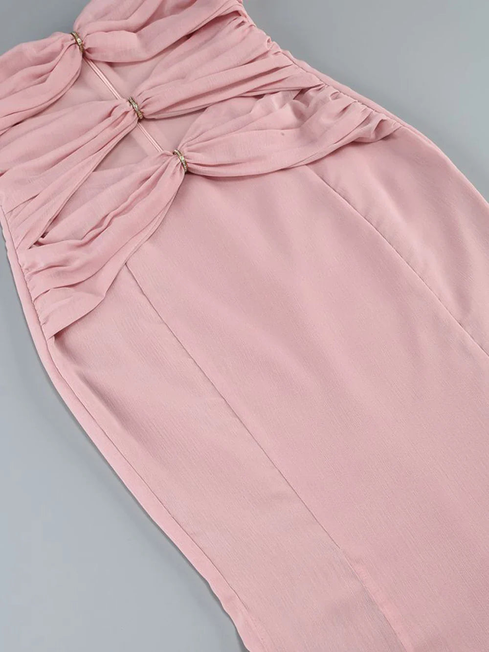 Expertly crafted for a flawless fit. this Pink Twisted Tube Scarf Mermaid Flare Midi Dress is a must-have addition to your wardrobe. Sleek and elegant. the twisted tube design accentuates your curves while the mermaid flare adds a touch of drama. Perfect for any occasion. this dress is sure to make a statement.