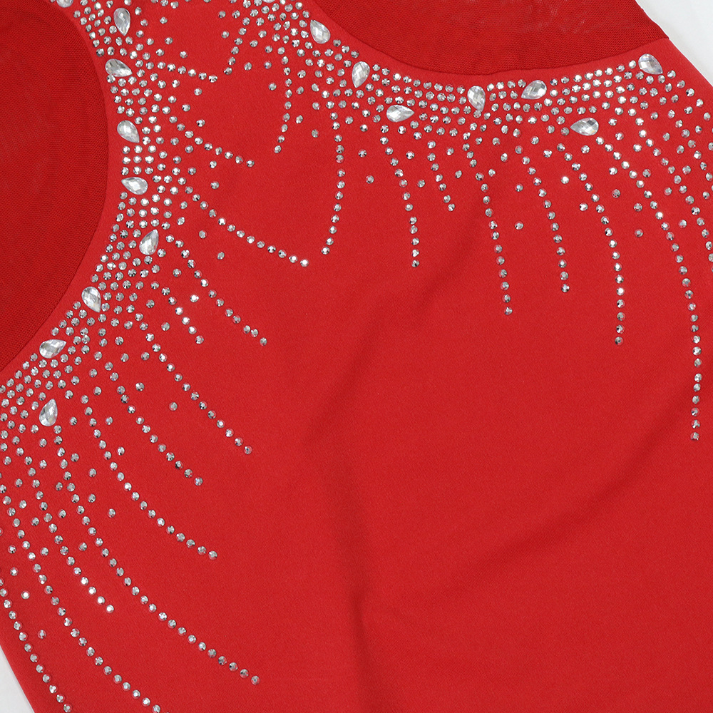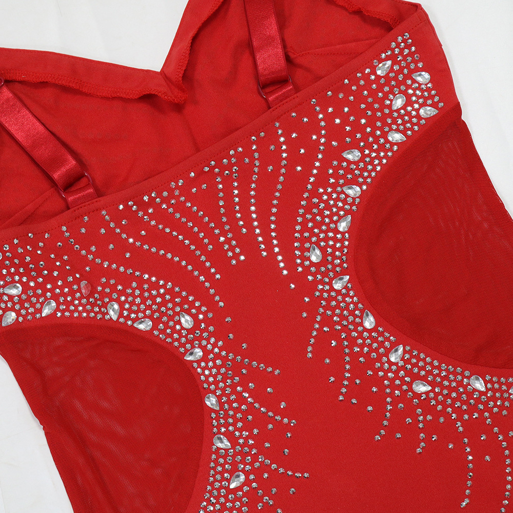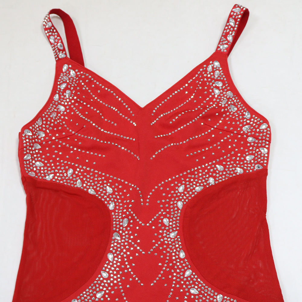 V neck Brace Maxi Dress Slim Fit Rhinestone Sheath Dress