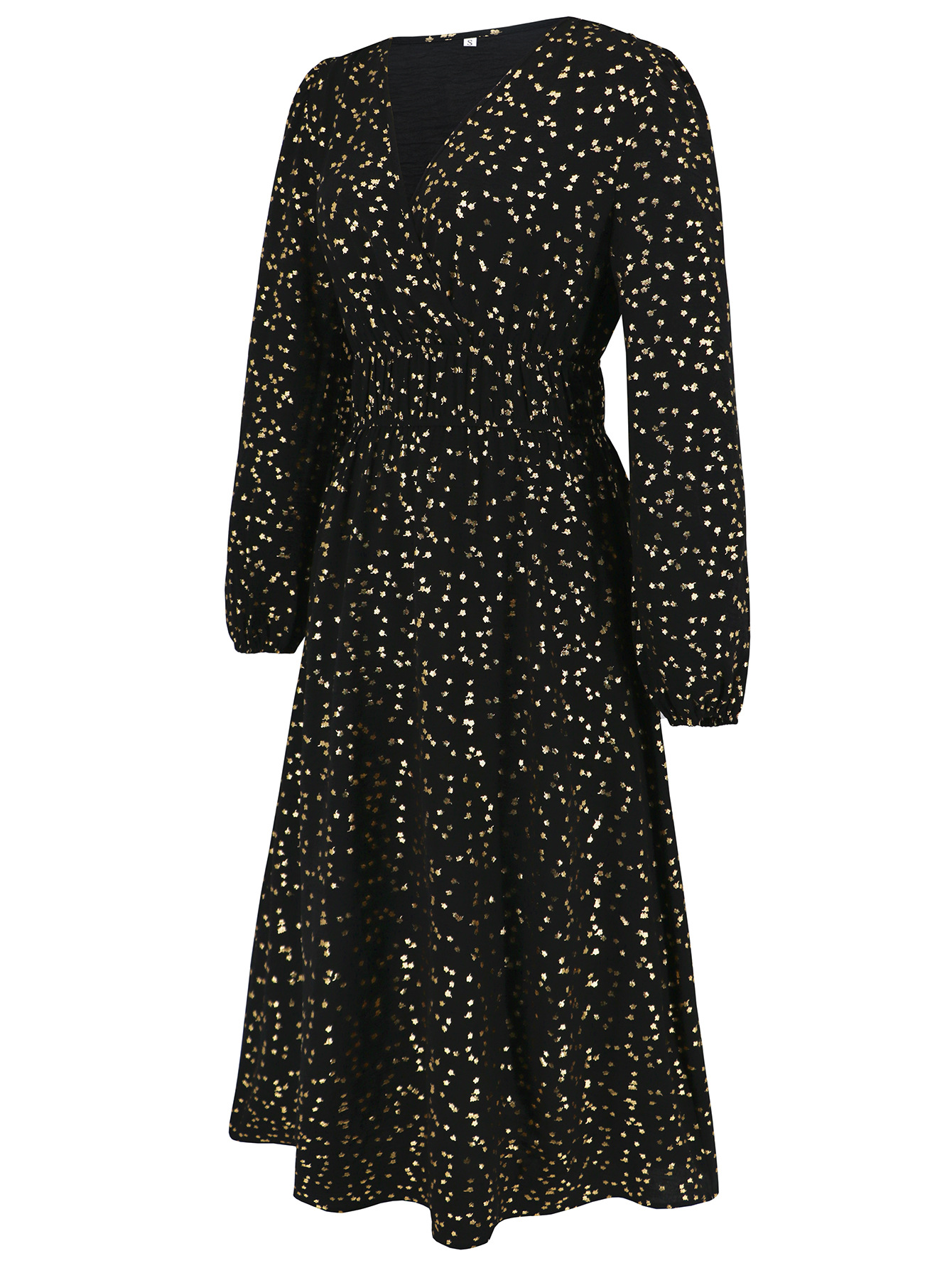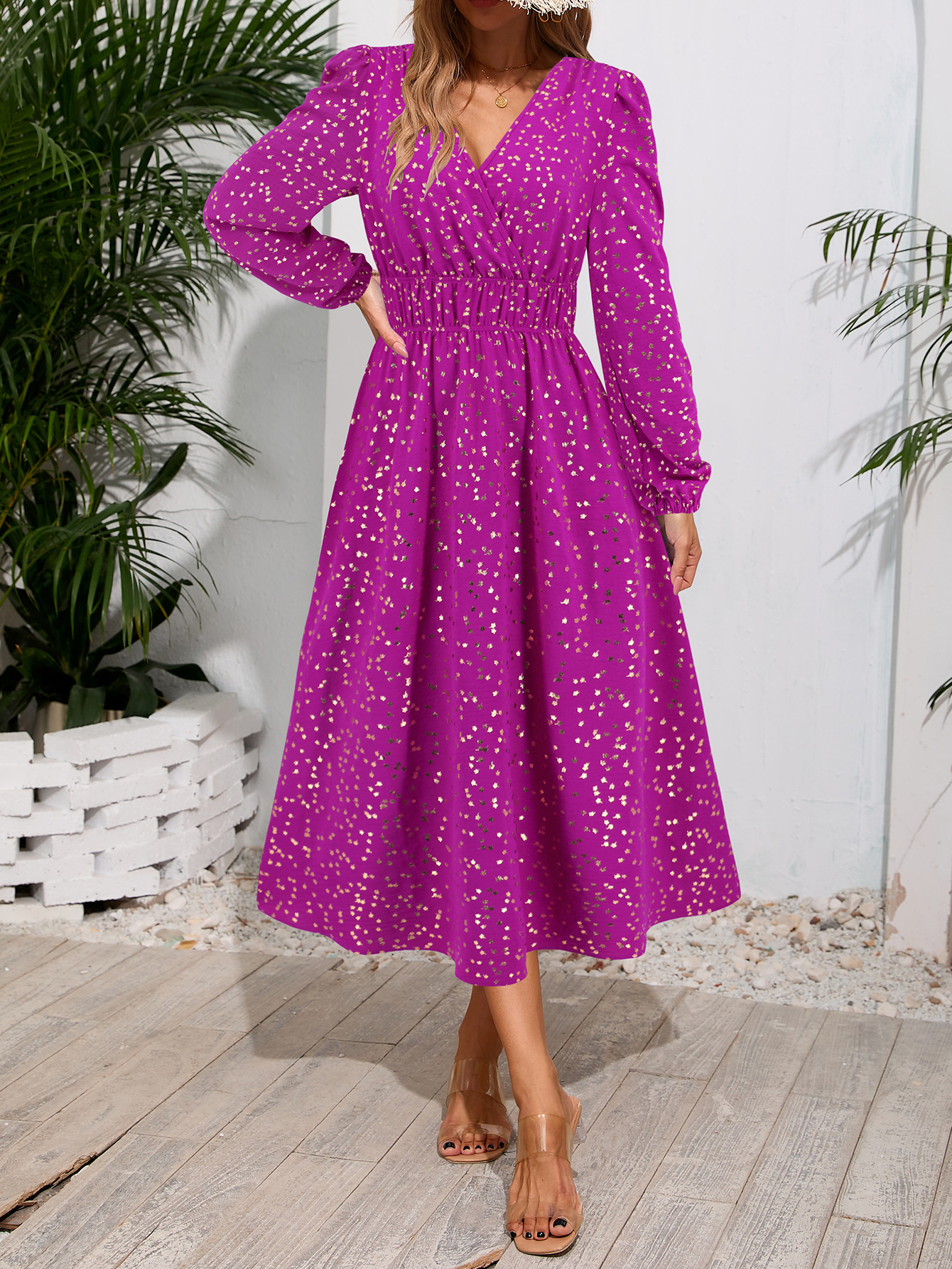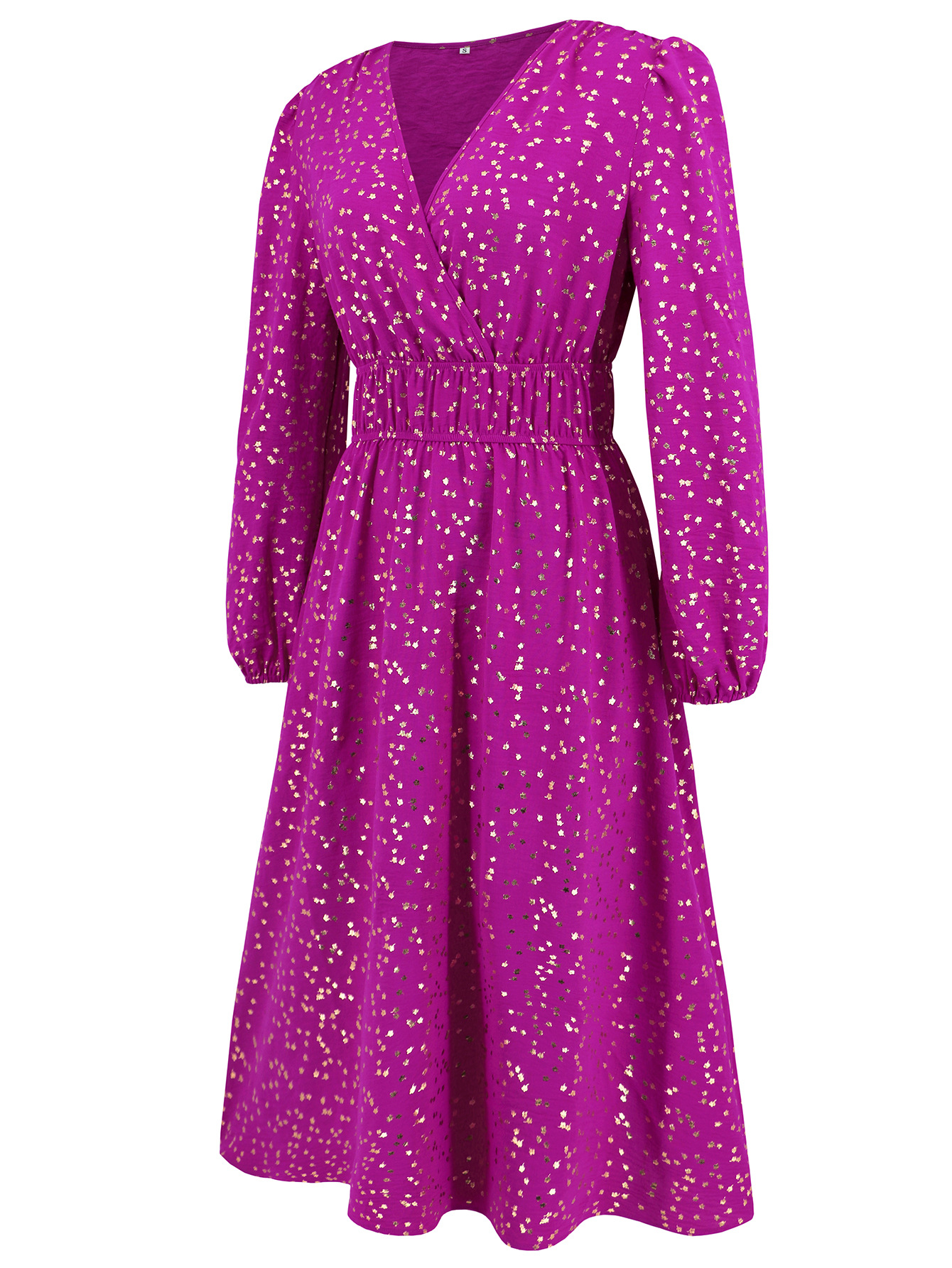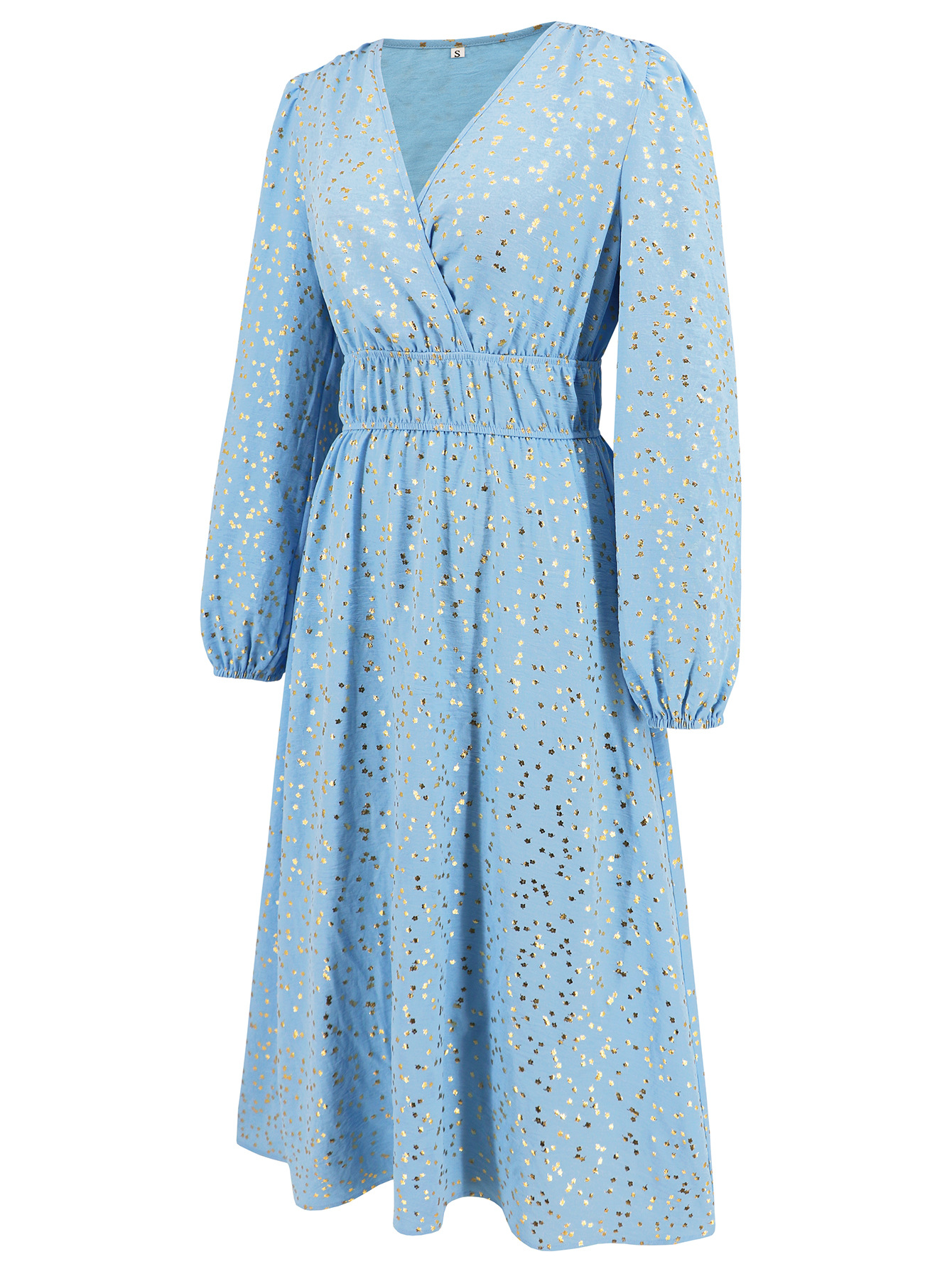 V neck Cocktail Dress Mid Length Slim Waist Shiny Dress