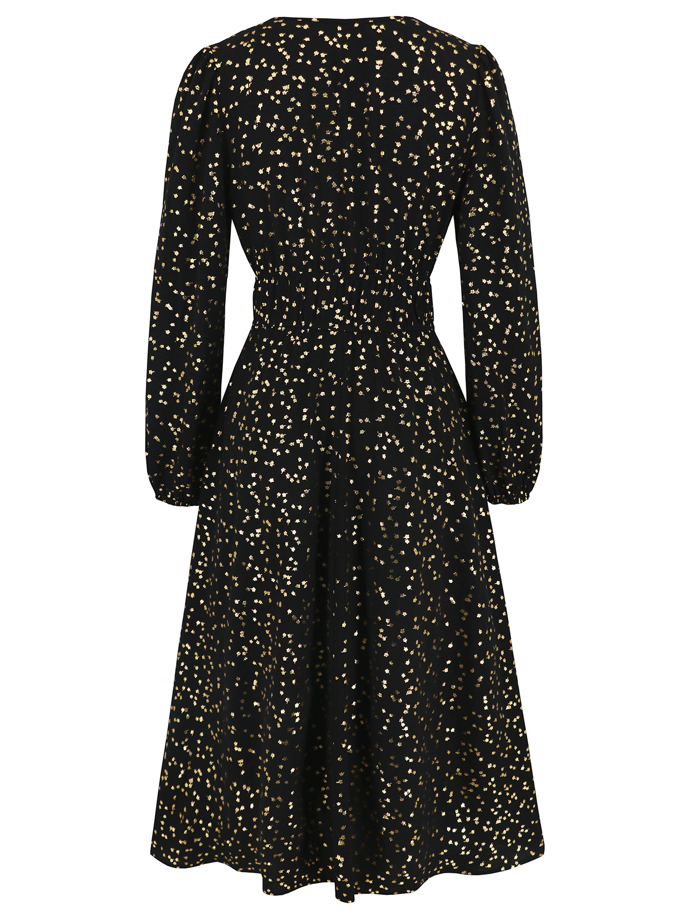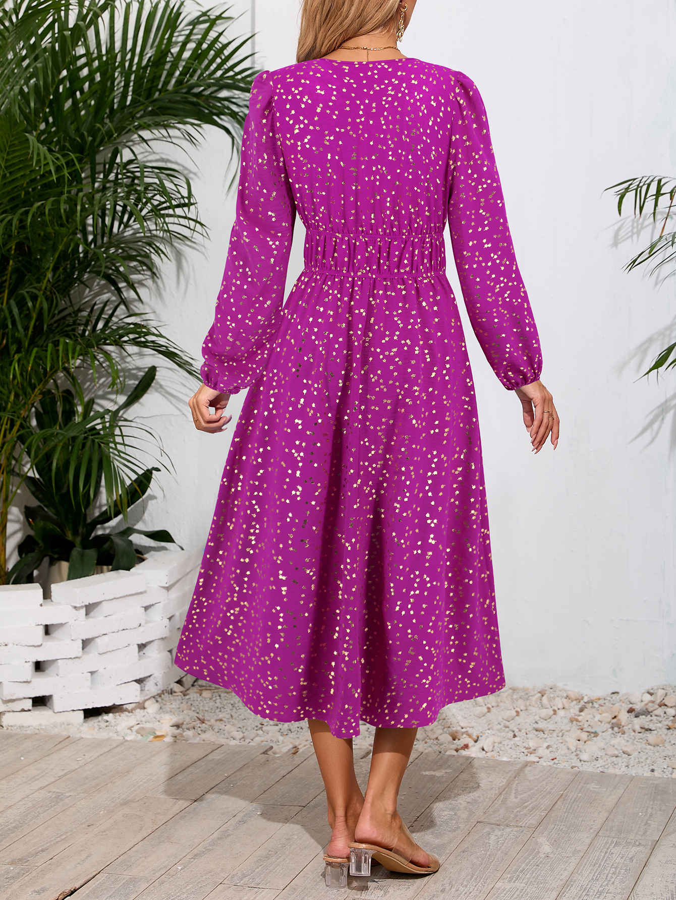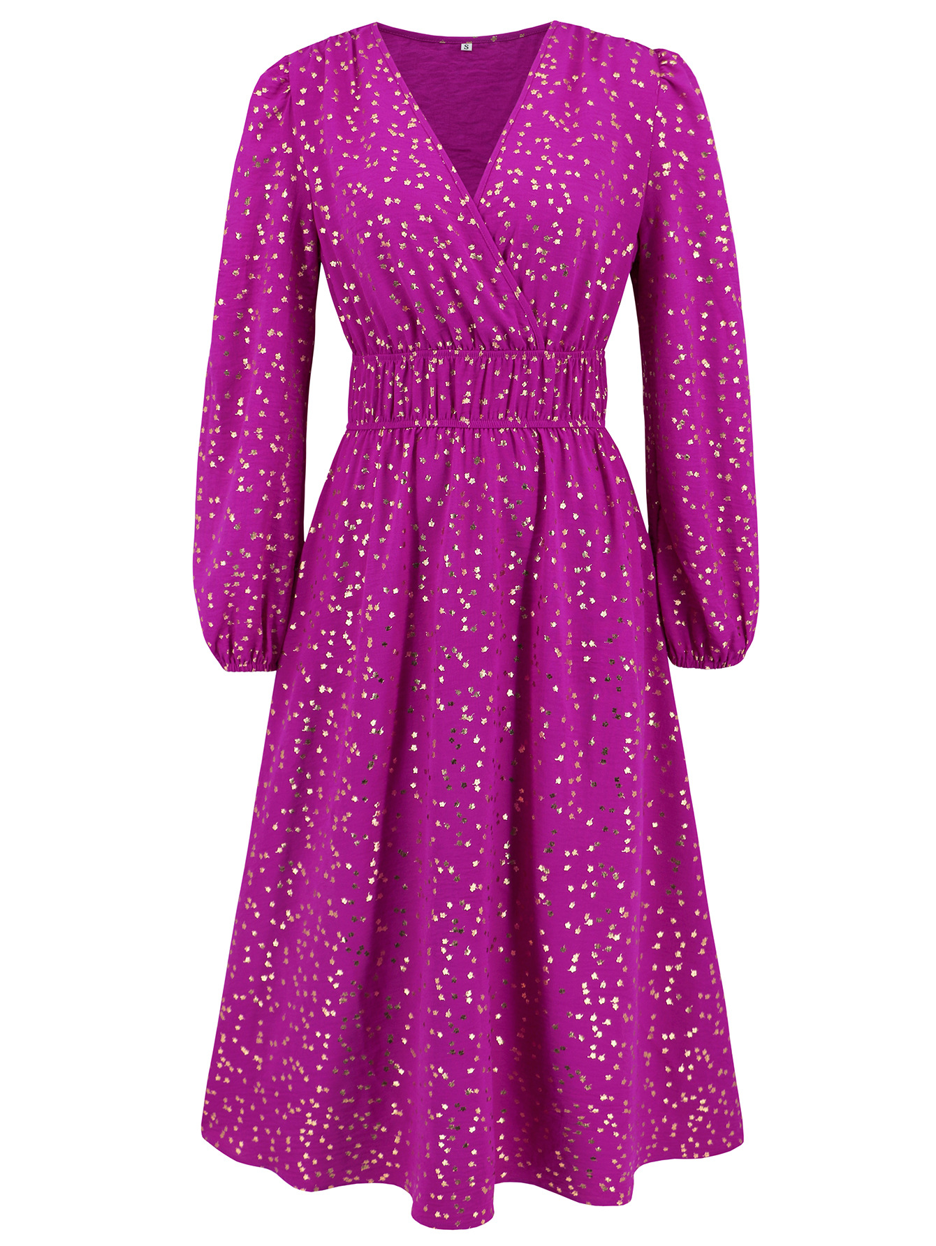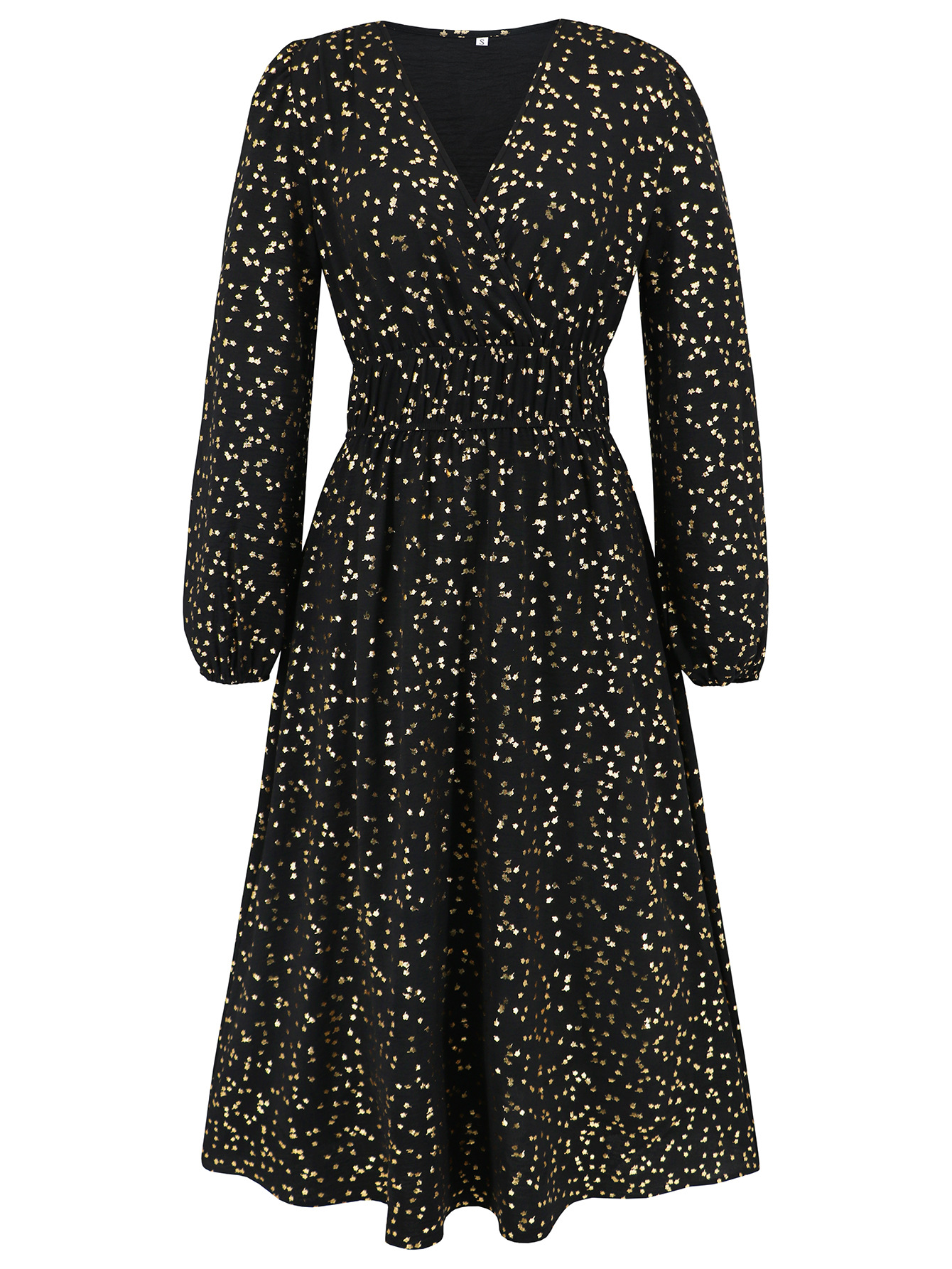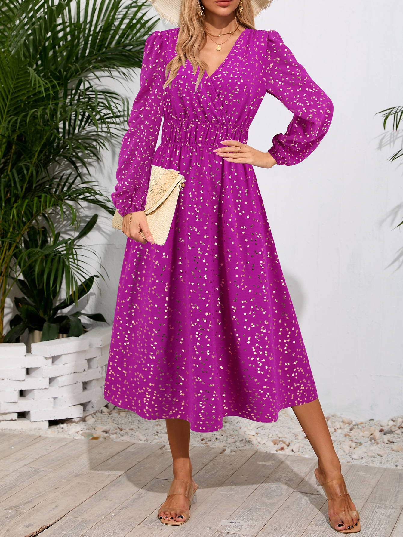 V neck Cocktail Dress Mid Length Slim Waist Shiny Dress