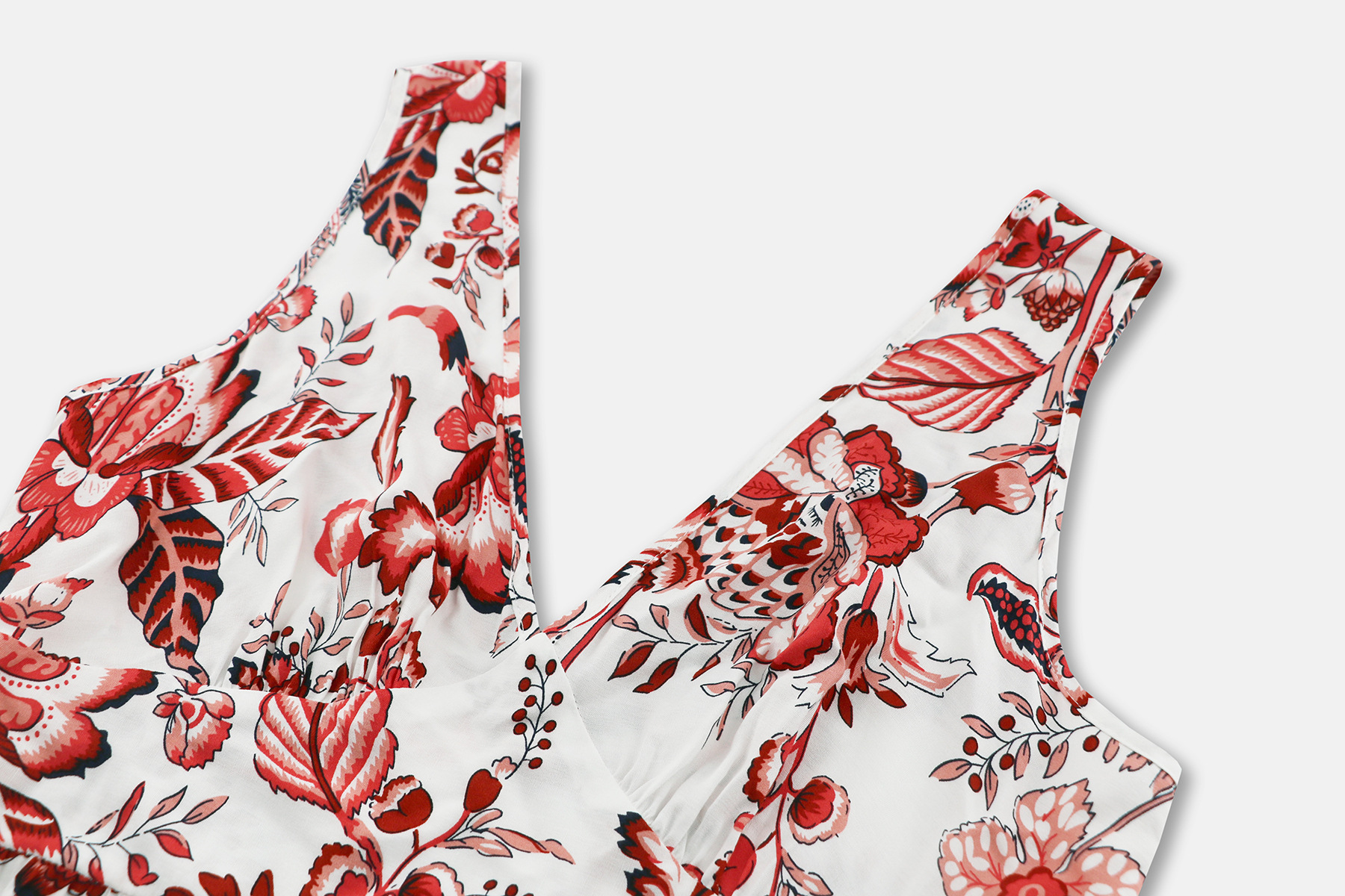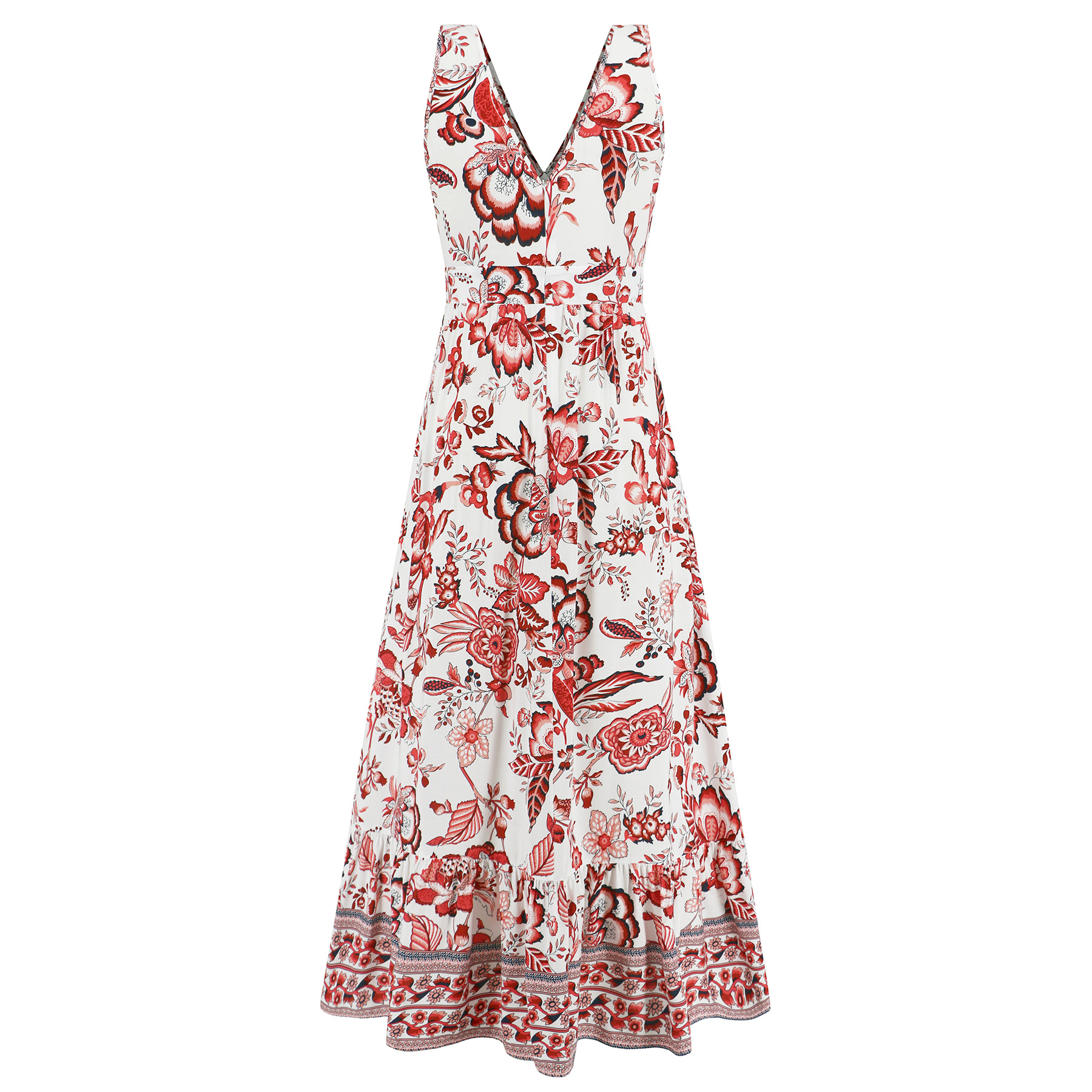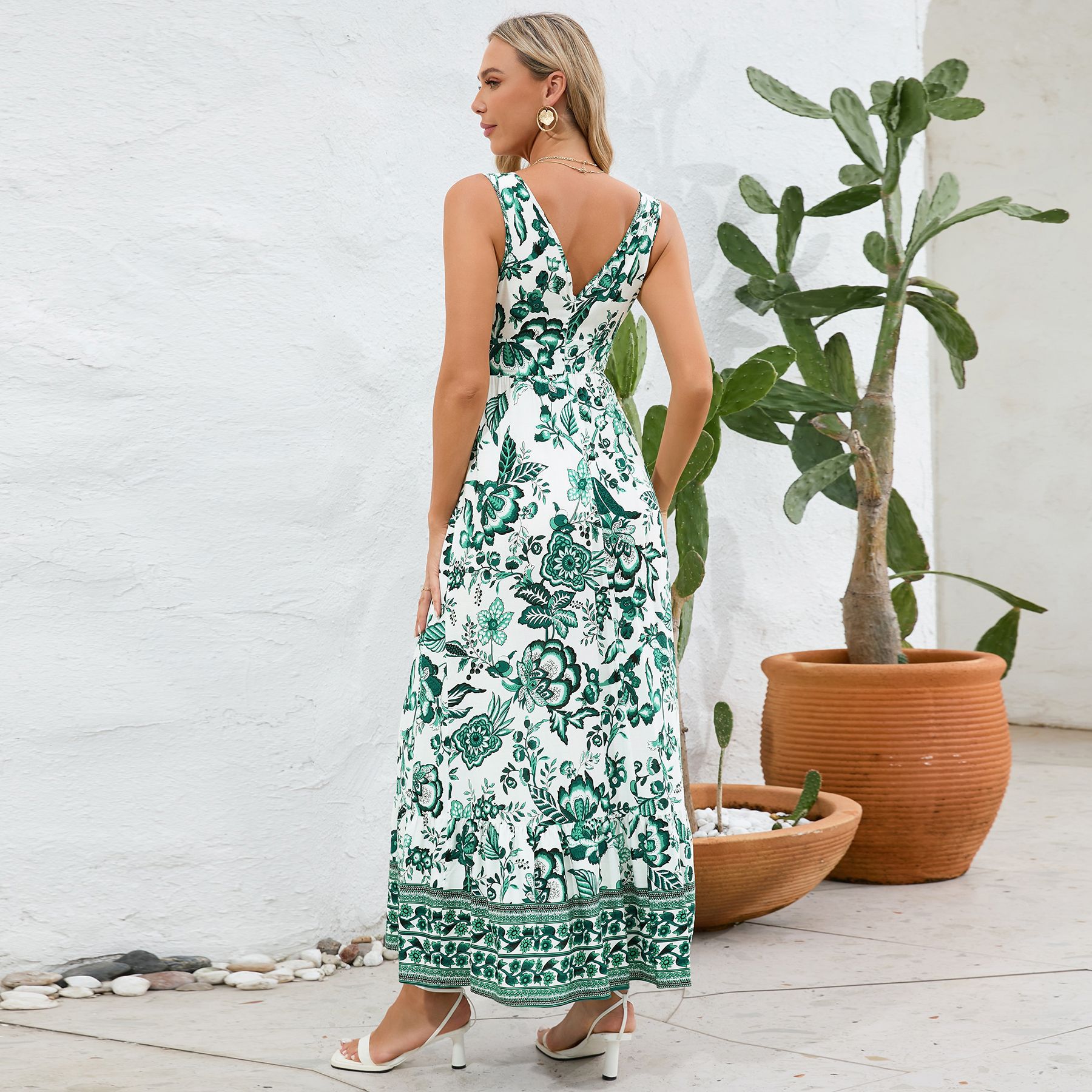 V Neck Slim Fit Elegant Dress Floral Dress Retro Printed Maxi Dress