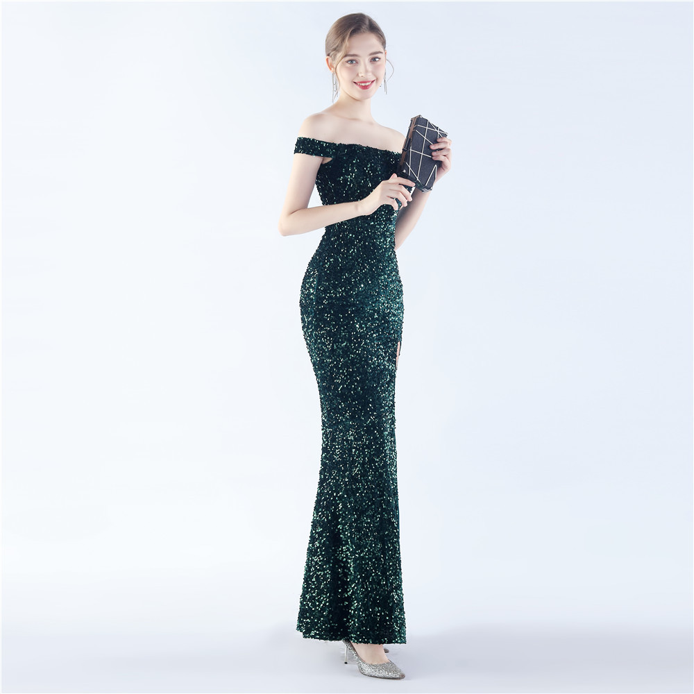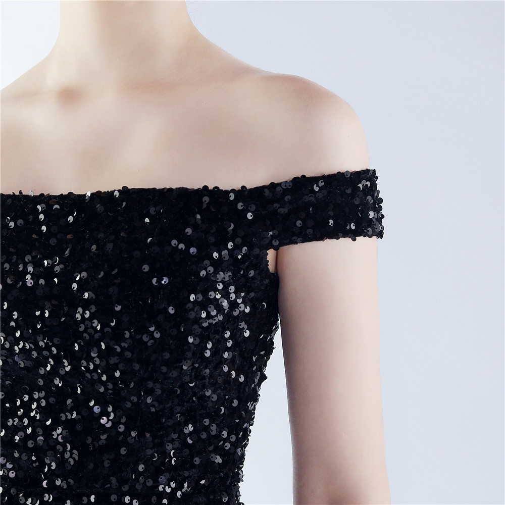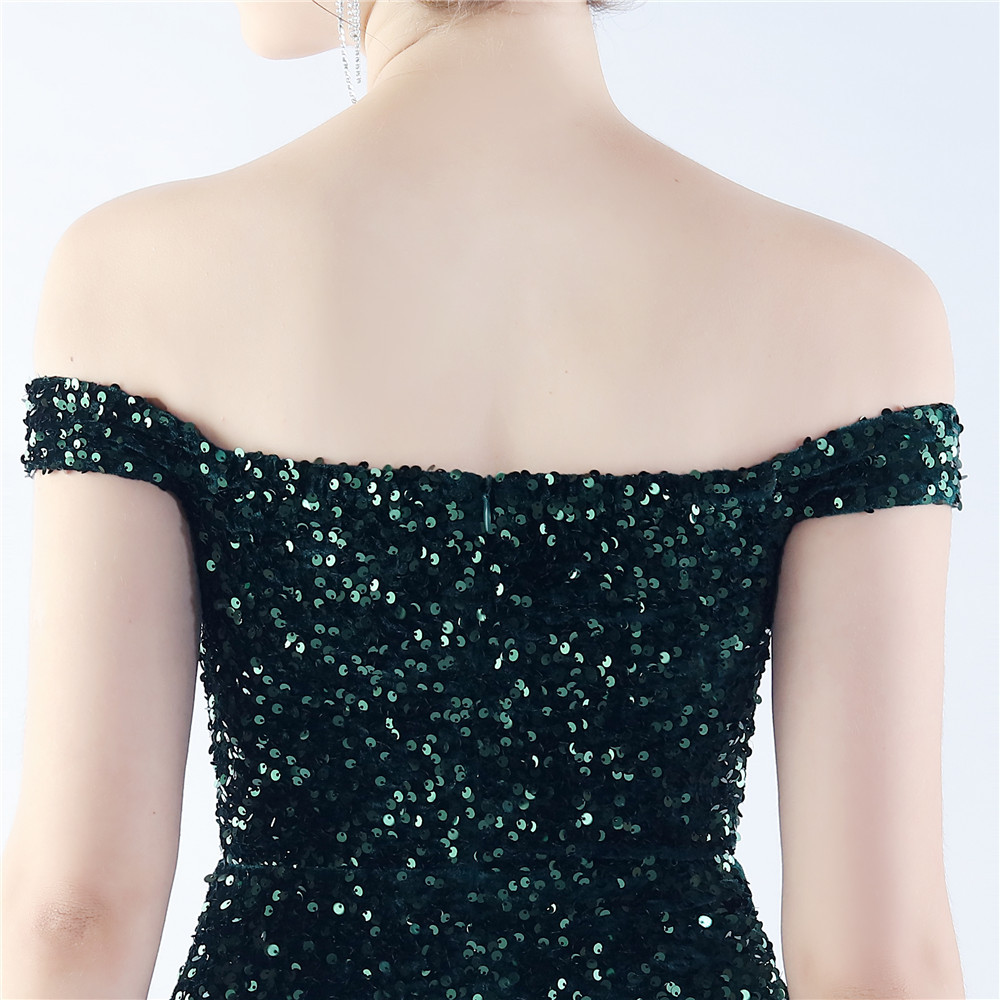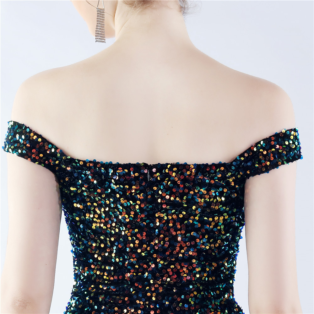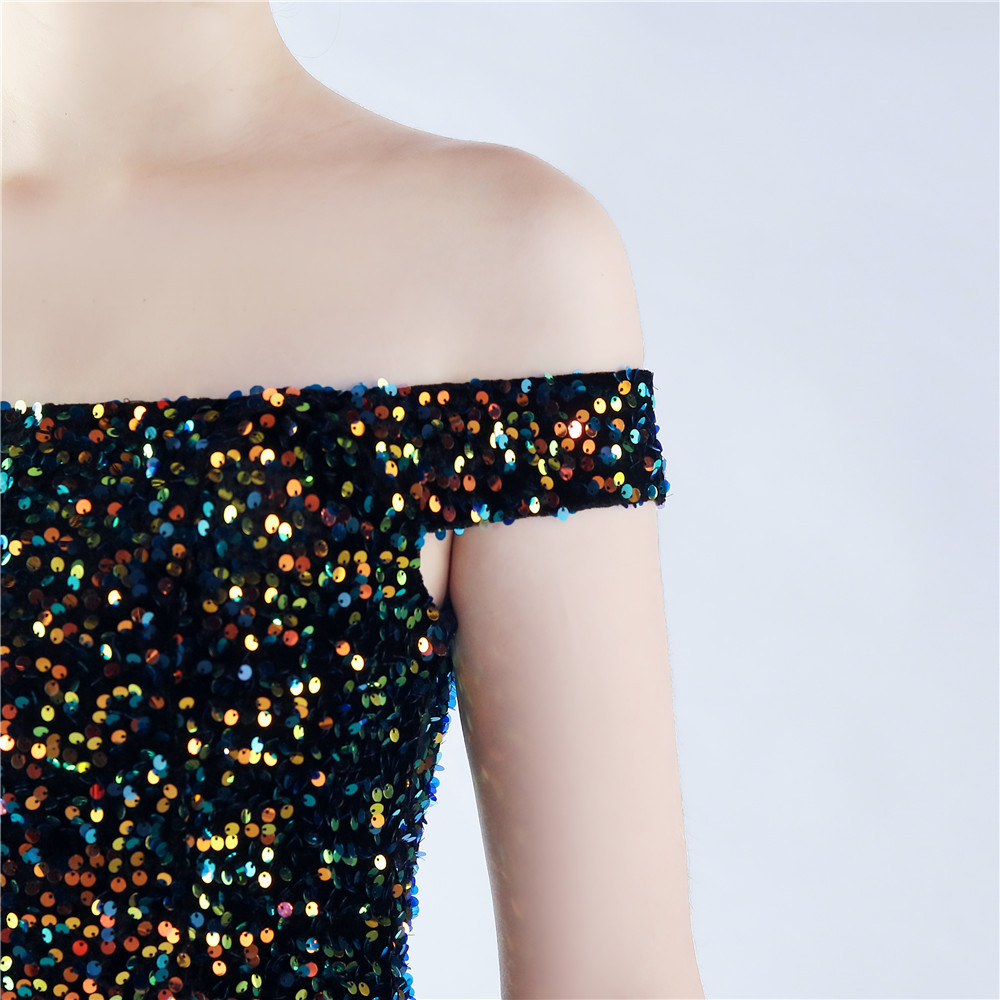 Velvet Bottom Handmade Sequin Cocktail Celebration Etiquette off Neck Evening Dress