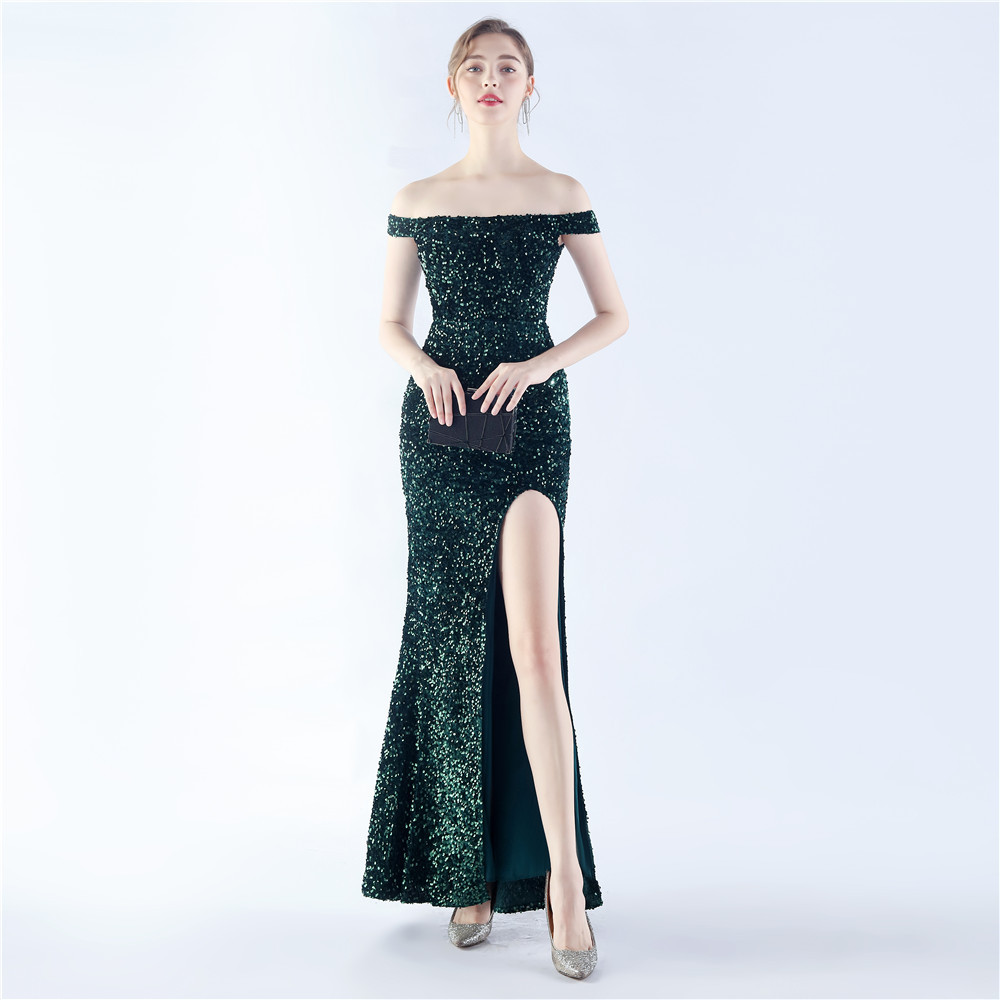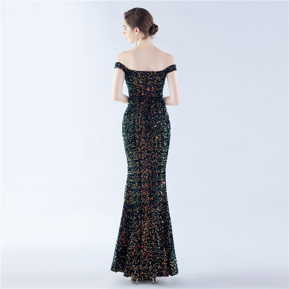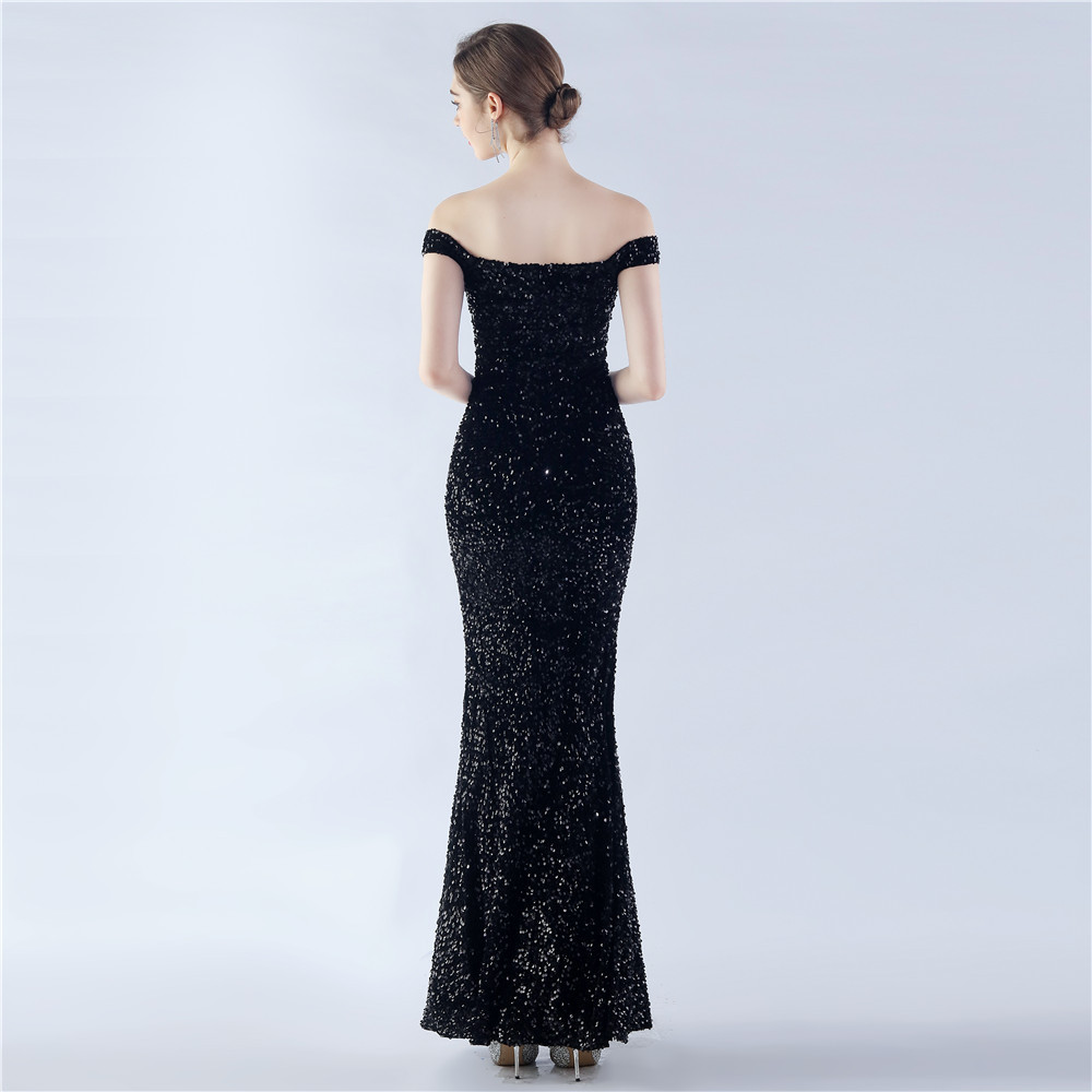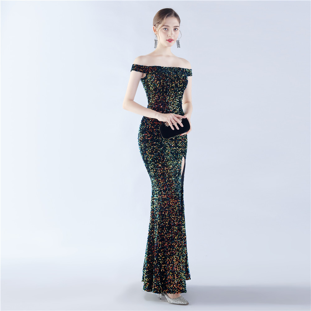 Velvet Bottom Handmade Sequin Cocktail Celebration Etiquette off Neck Evening Dress