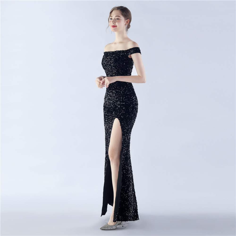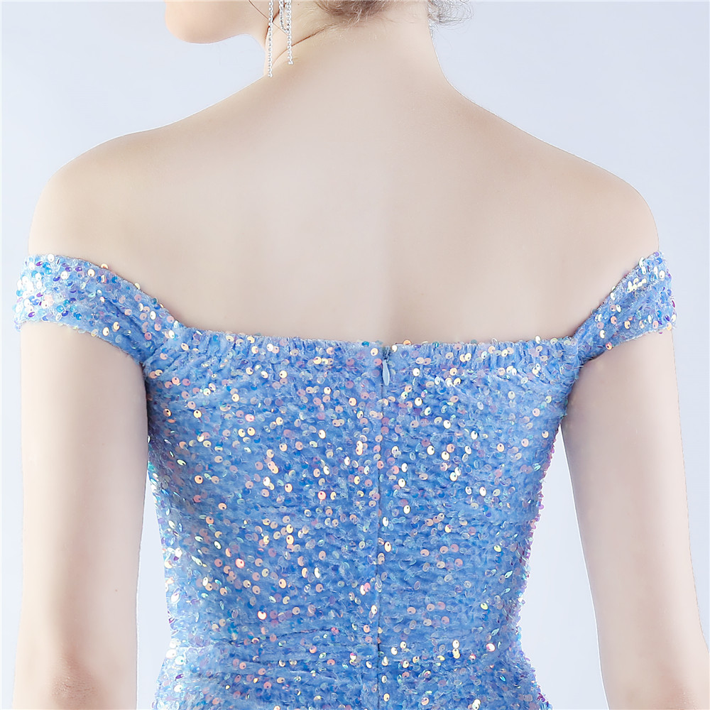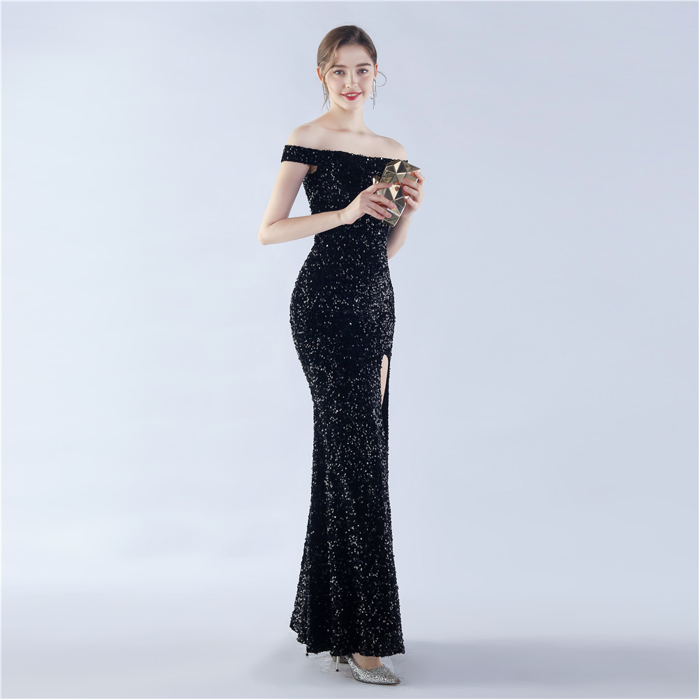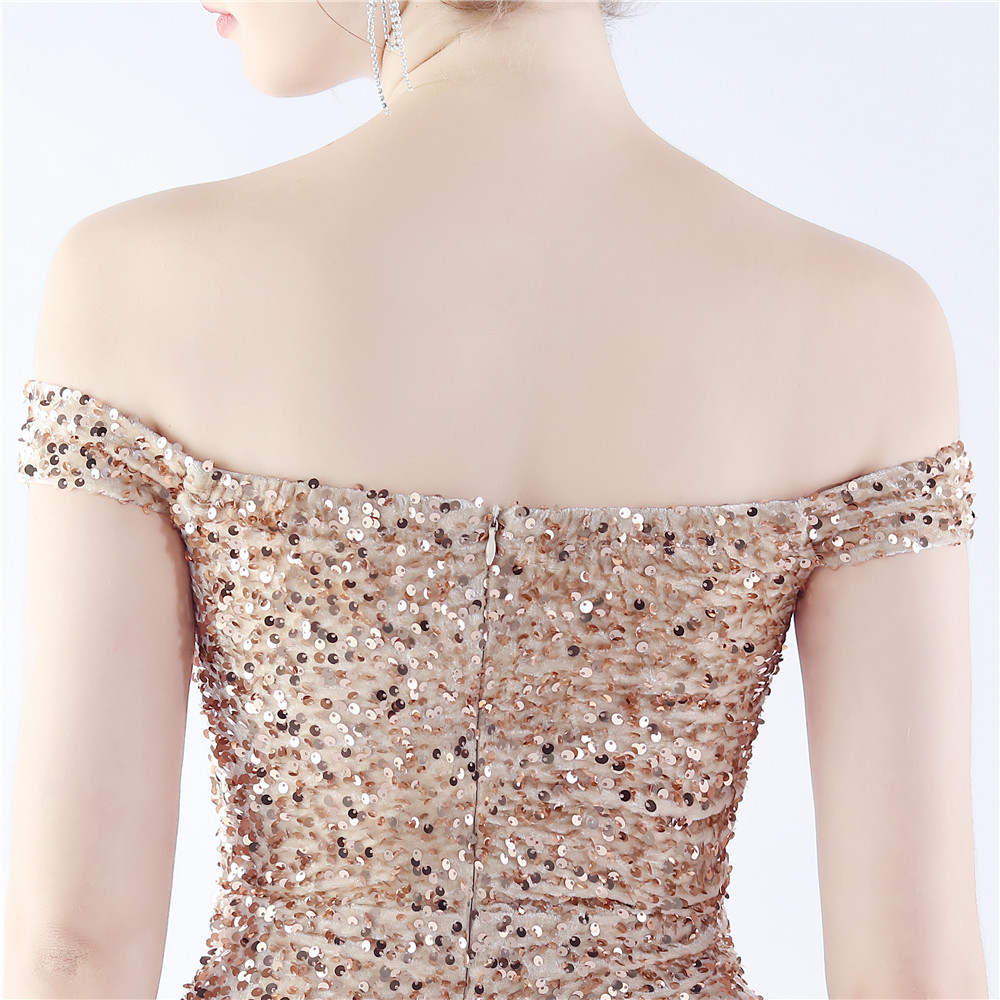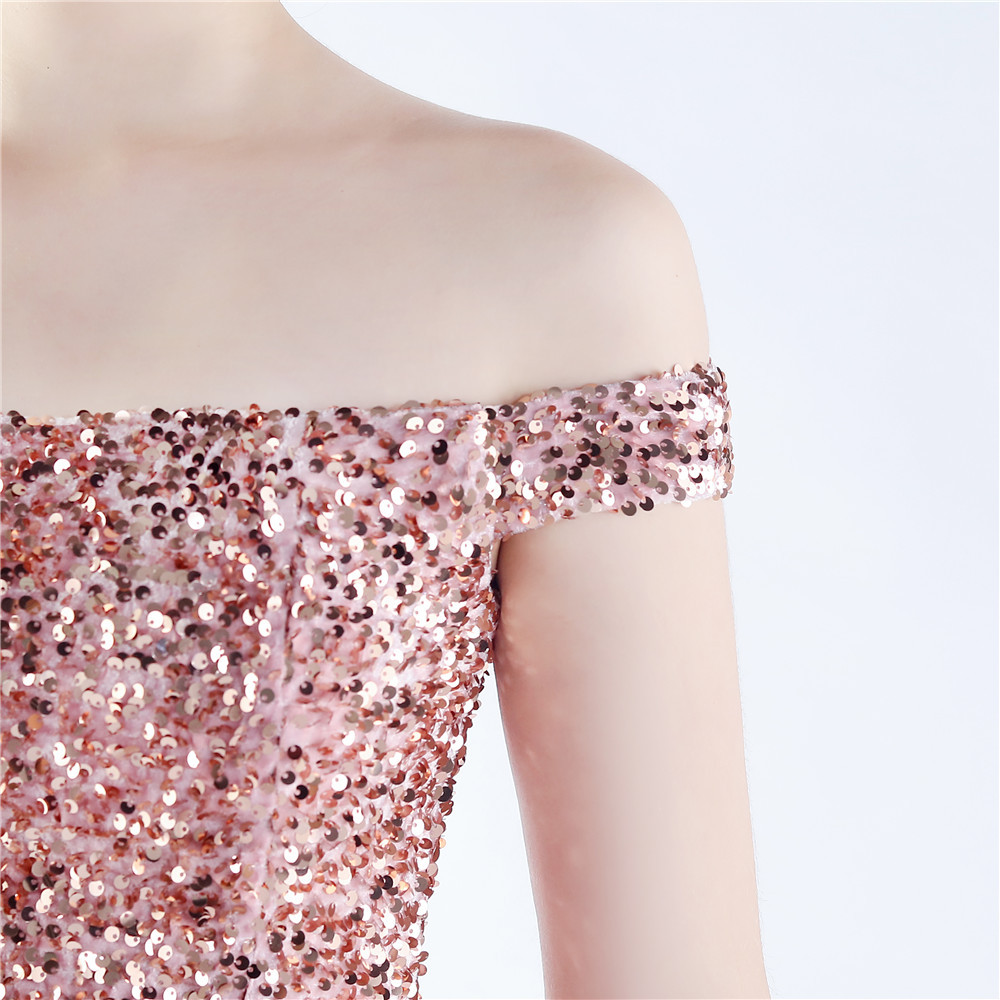 Velvet Bottom Handmade Sequin Cocktail Celebration Etiquette off Neck Evening Dress