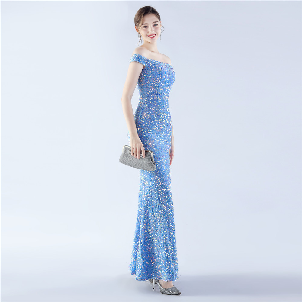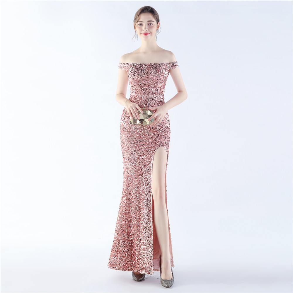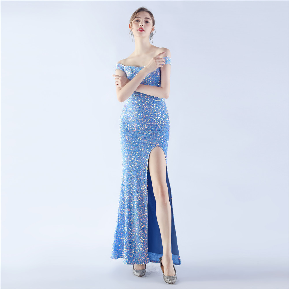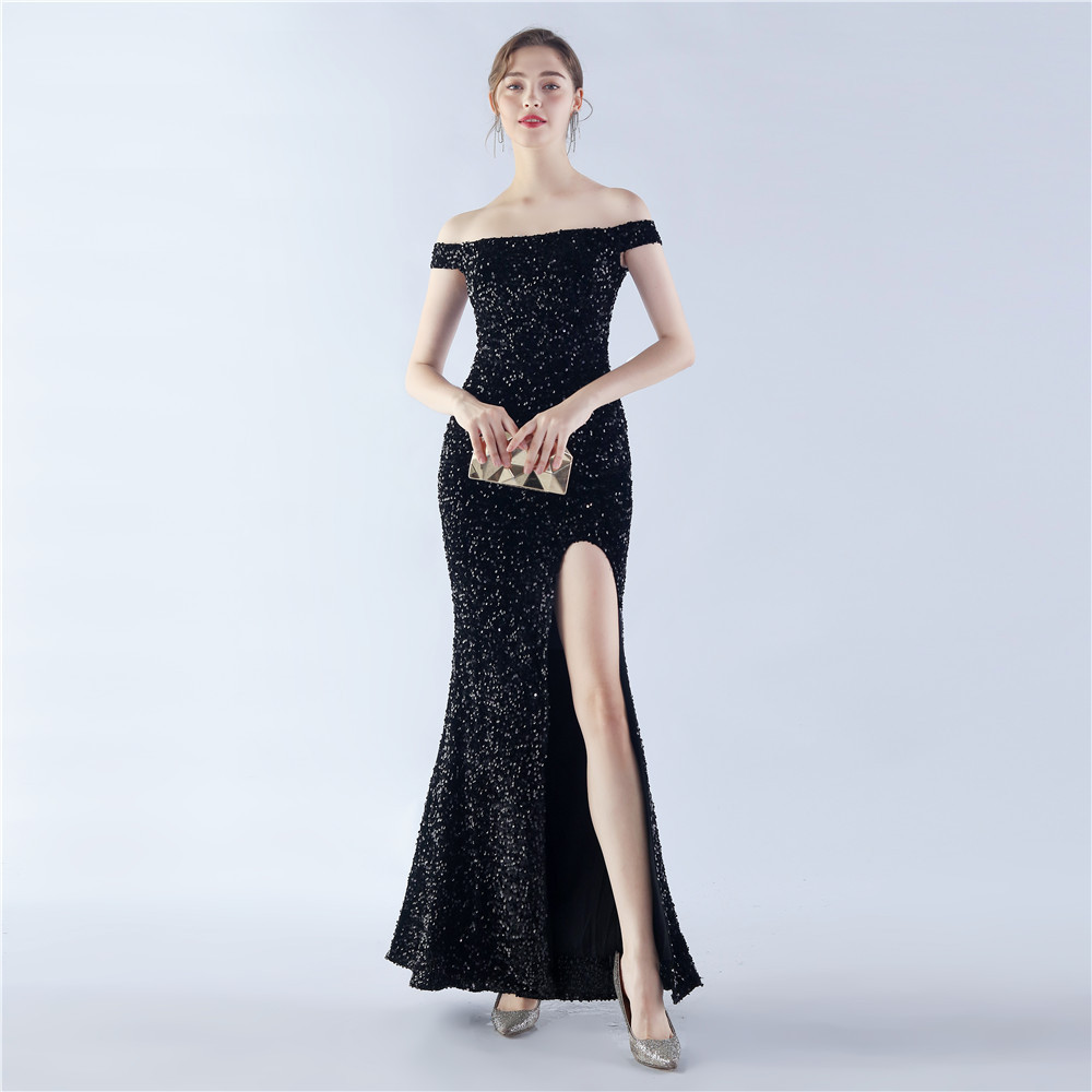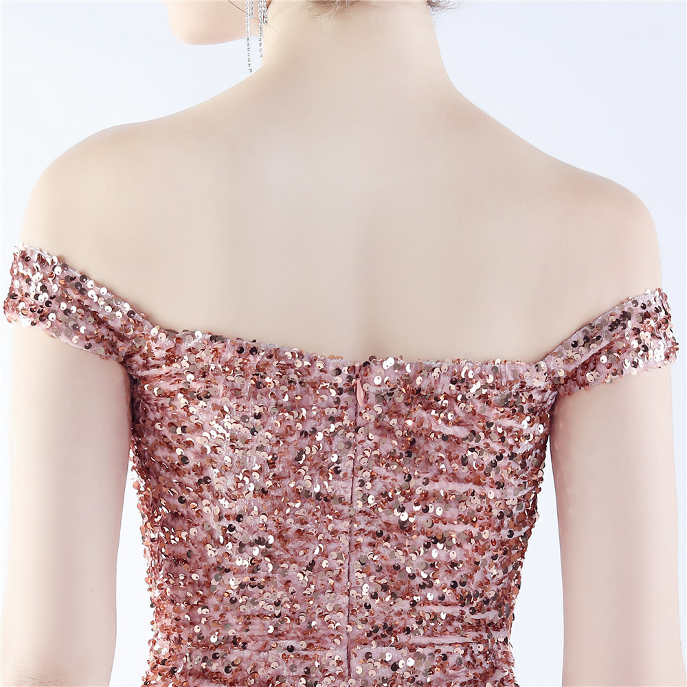 Velvet Bottom Handmade Sequin Cocktail Celebration Etiquette off Neck Evening Dress
