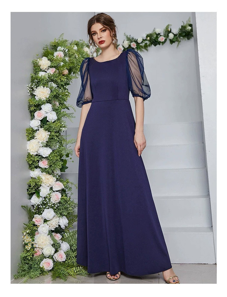 Voile Dress round Neck High Waist Half Sleeve Dress