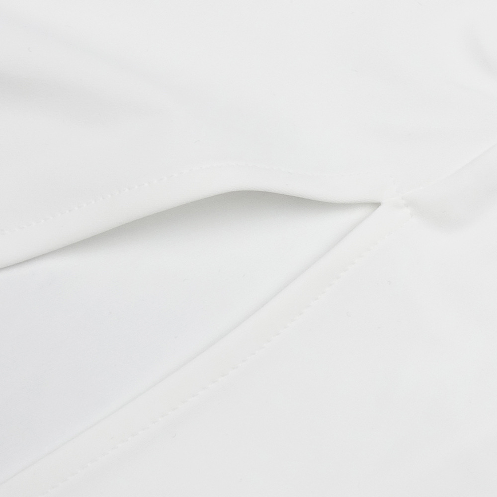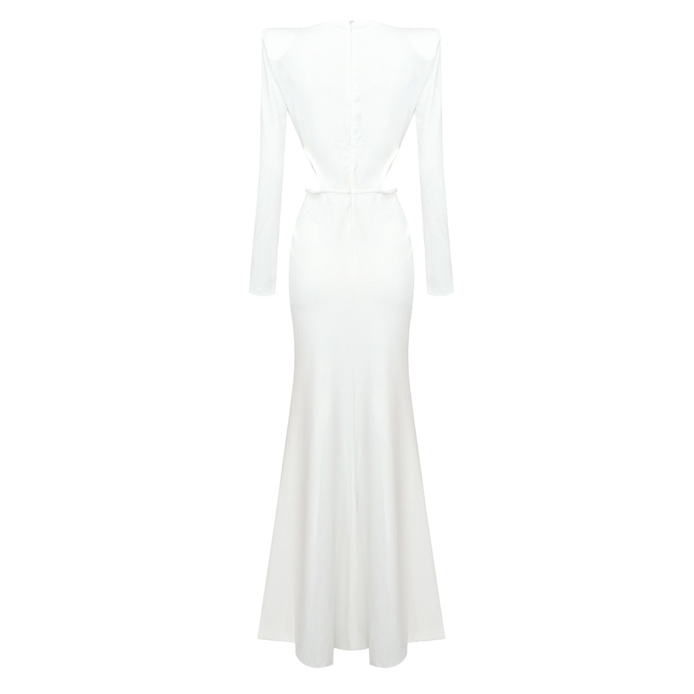 White Long Sleeve Pleating Hollow Out Cutout Cross Dress V Neck Metal Waist