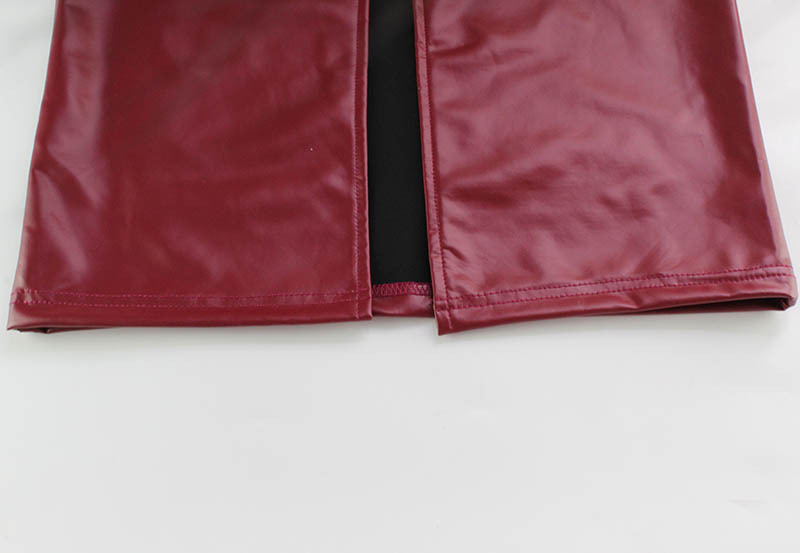 Wine Red Vintage Camisole Faux Leather Skinny Sheath Dress Split Dress Dress