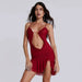 Vestido corto con espalda descubierta y tirantes finos de malla