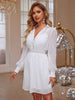 Vestido de llegada con escote en V, botones, manga larga, color liso, cintura dulce, malla