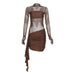 Vestido de manga larga ajustado con cuello redondo plisado y aberturas de malla