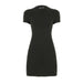 Vestido básico informal de verano con cuello alto y manga corta con diamantes de imitación, color liso, ajustado y ajustado.
