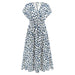 Vestido estampado de moda con mangas de murciélago, escote en V, espalda descubierta y cordones