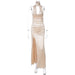 El más vendido en escote en V profundo, halter, espalda descubierta, lazo y abertura