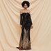 Vestido de noche formal con cola pequeña y lentejuelas, estilo fiesta anual, color negro, top de tubo con hombros descubiertos