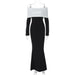 Black & White Off-the-Shoulder Maxi Dress with Long Sleeves