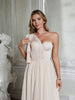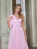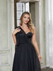 Vestido largo elegante de gasa con un hombro al descubierto y cintura ajustada con corsé deshuesado