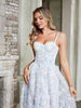 Vestido maxi dulce y fresco con estampado floral tridimensional y tirantes finos de corsé.