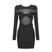 Vestido negro de manga larga con lazo y tiras de diamantes de imitación, semitransparente