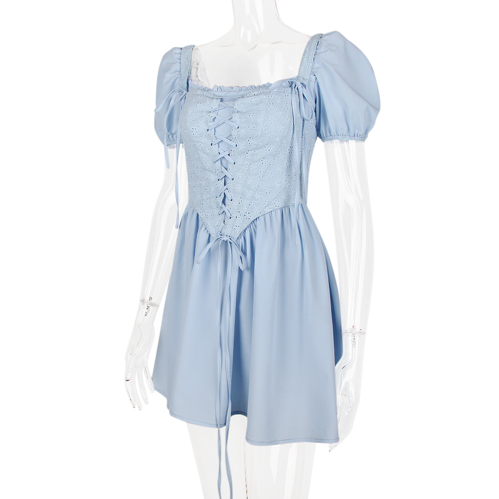 Vestido de dos piezas con cuello cuadrado y mangas abullonadas, estilo princesa, estilo corsé, Dopamine Wear