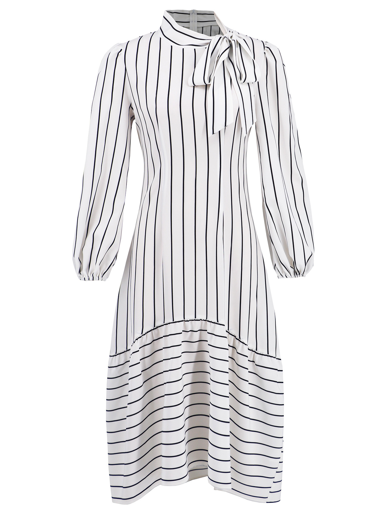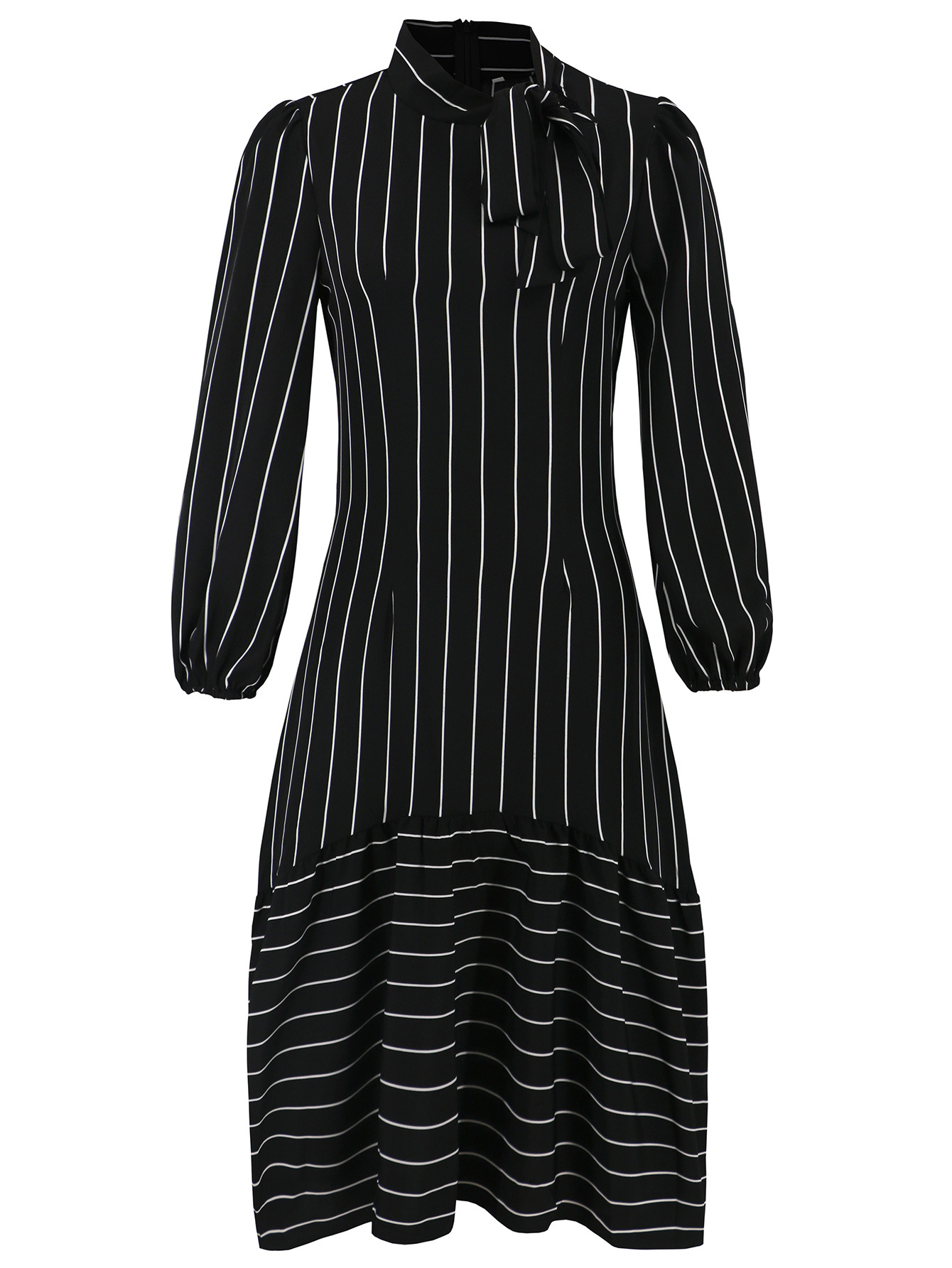 Vestido de rayas finas con cuello alto de alta calidad para negocios