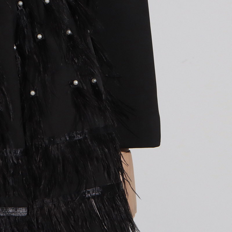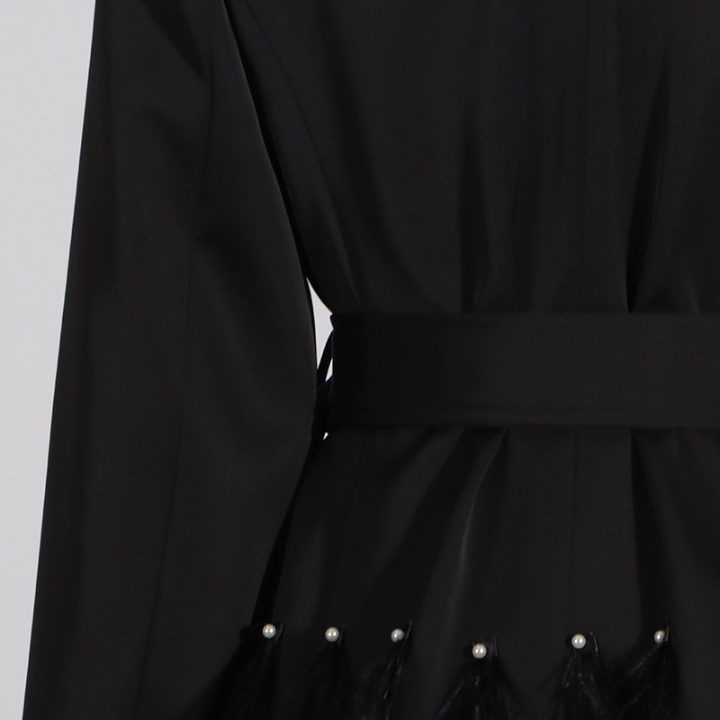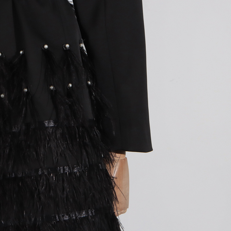 Pantalones informales de negocios con retazos de plumas y cuentas de alta calidad que adelgazan la cintura