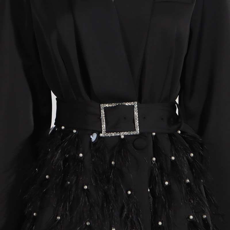 Elemento: Abalorios, diamantes de imitación , cinturón y plumas.